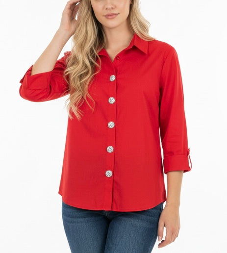 The Stone Button Up Top by Zac & Rachel features a sophisticated 3/4th sleeve design complemented by unique button embellishments. This top provides versatility for various occasions and offers a polished appearance, making it suitable for both professional and casual settings. Its thoughtful design enhances comfort while maintaining an elegant aesthetic.