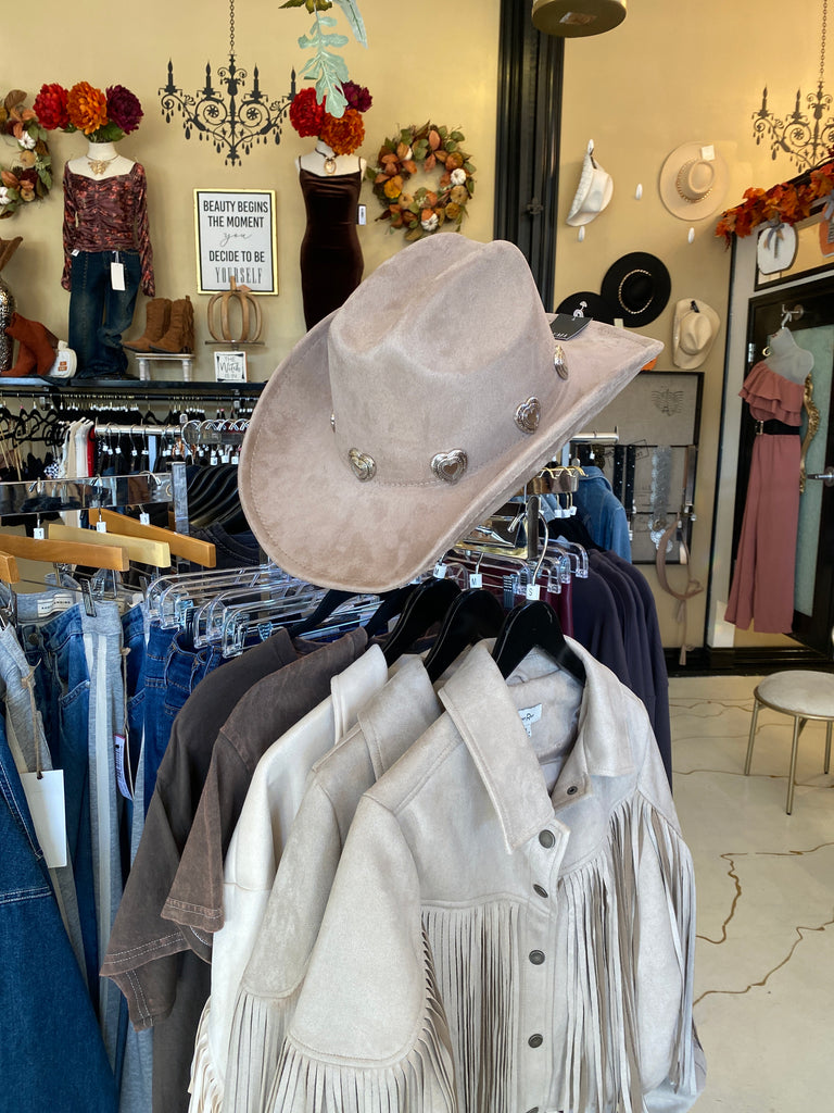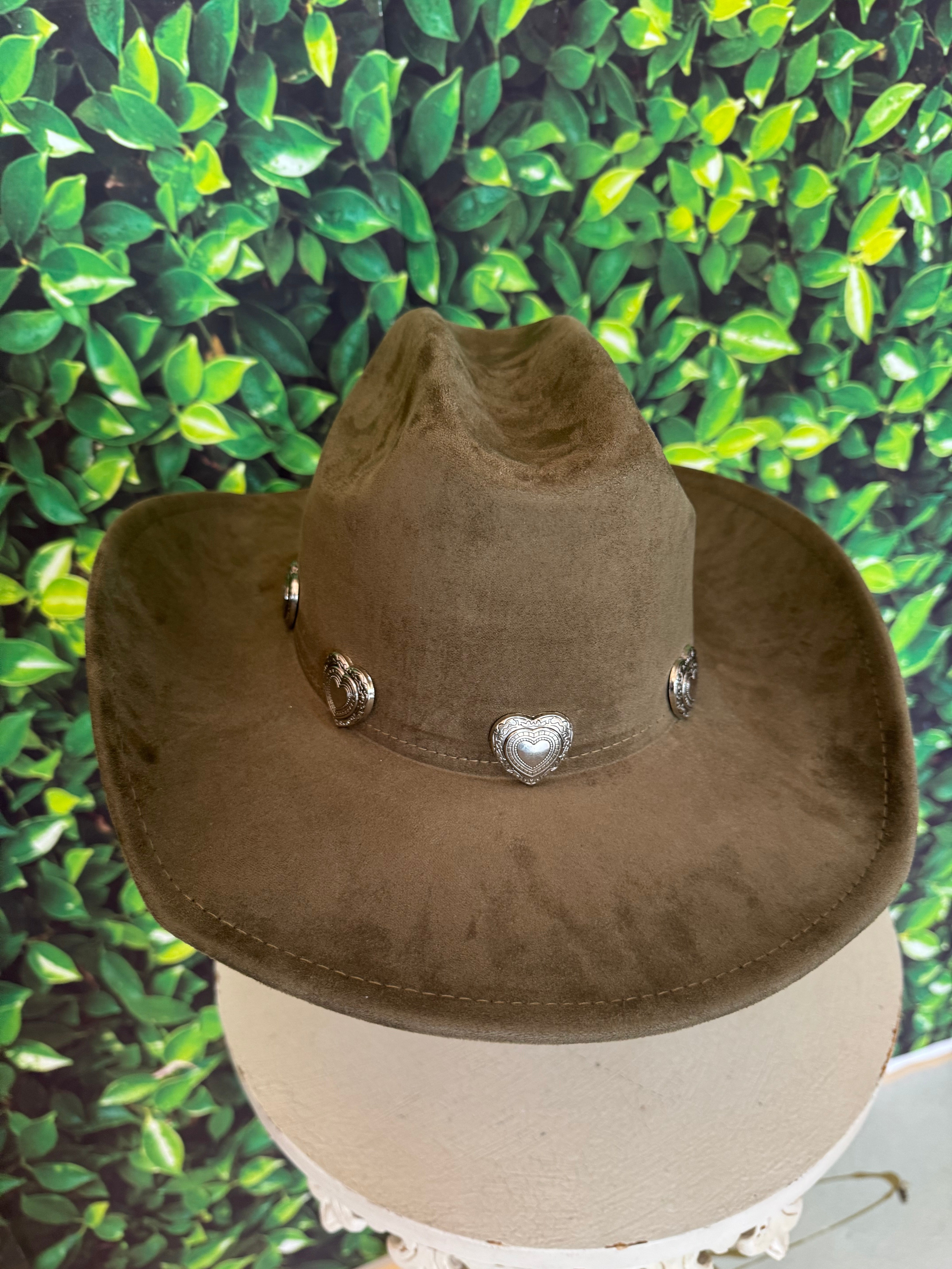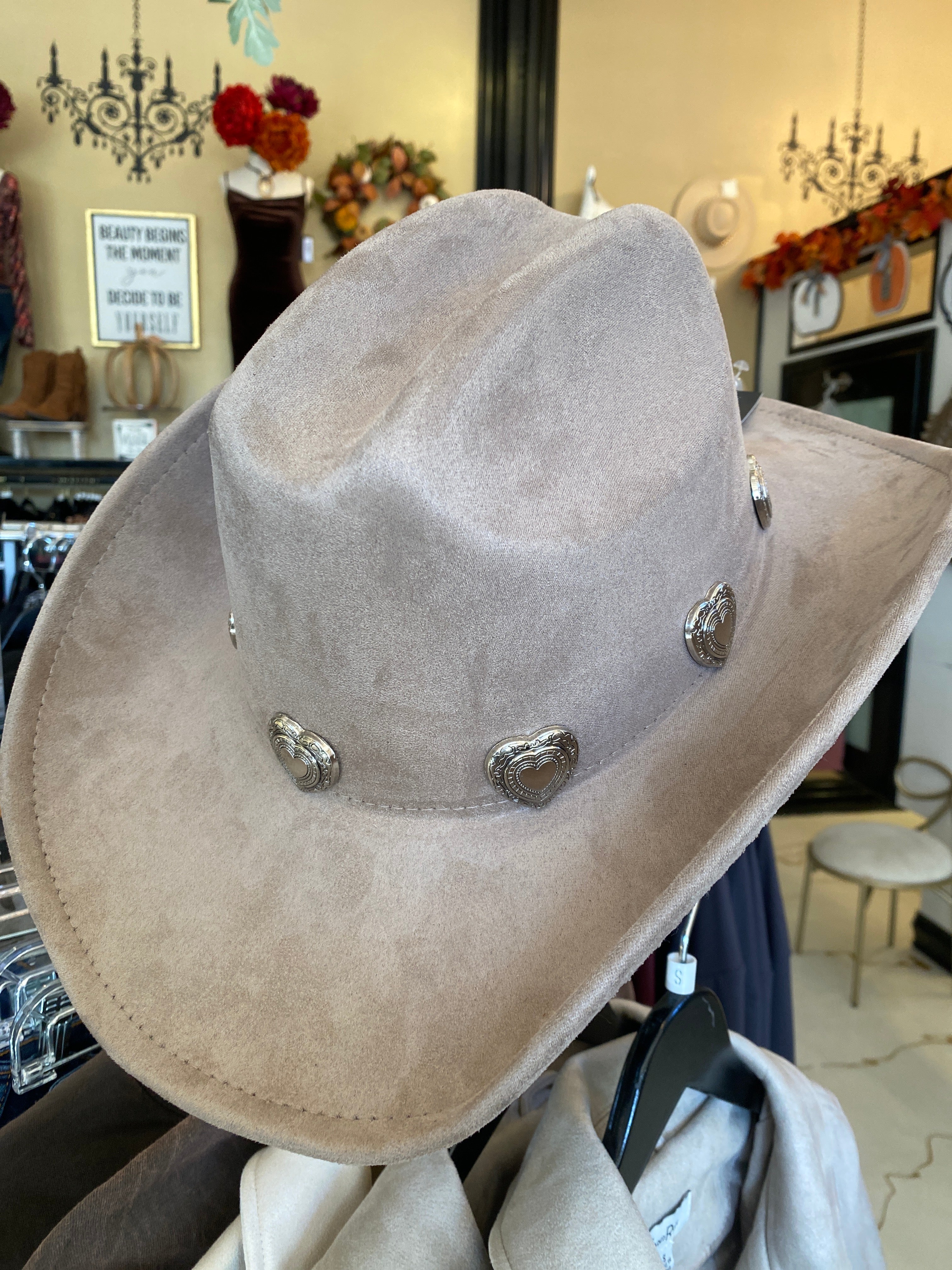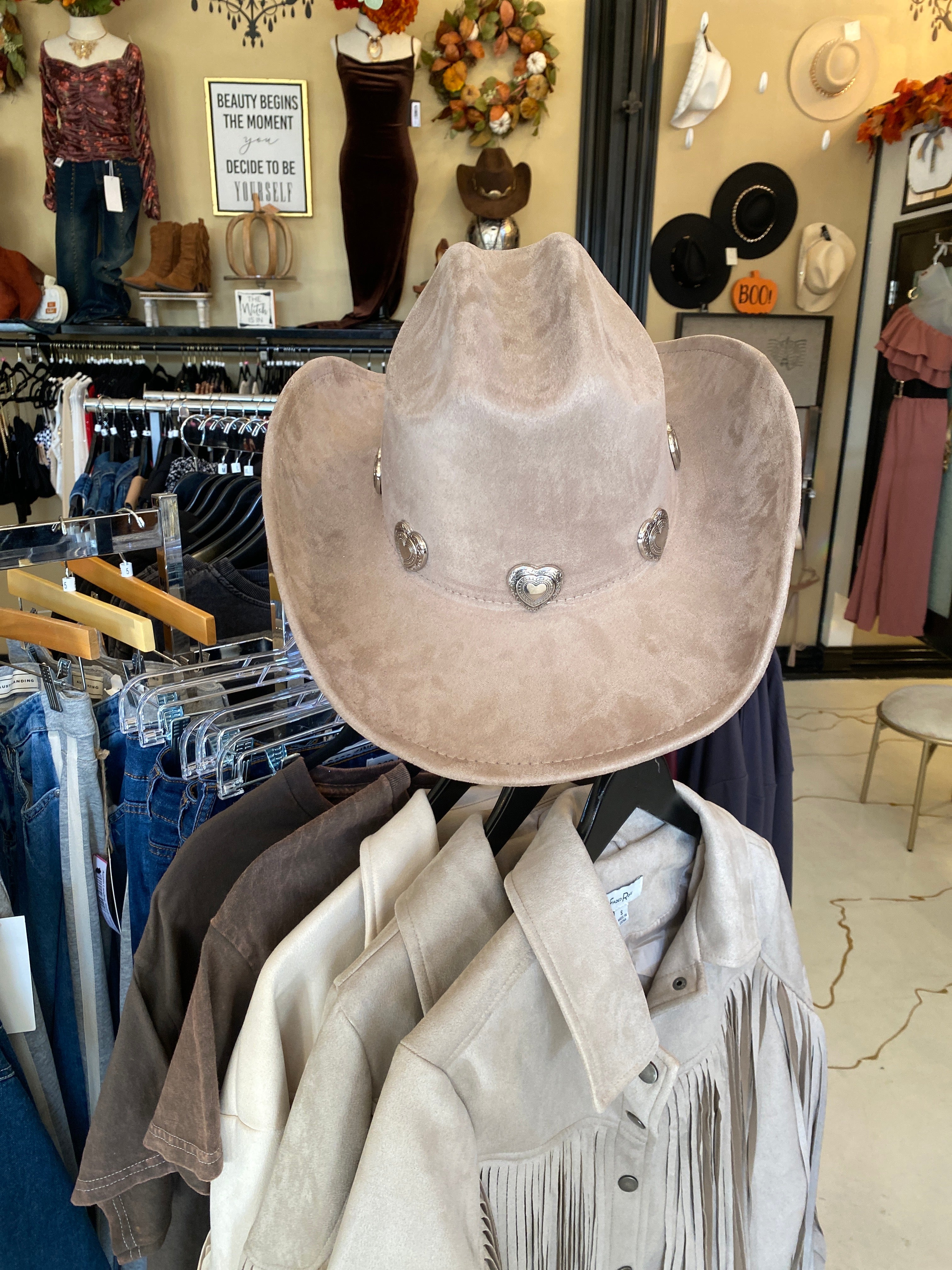 Saddle up and look effortlessly stylish with this Silver Heart Concho Cowgirl Hat By Illuma. Featuring large heart-shaped silver studs, it's the perfect mix of edgy and sweet. Stay cool and chic all day long with this must-have cowgirl hat.