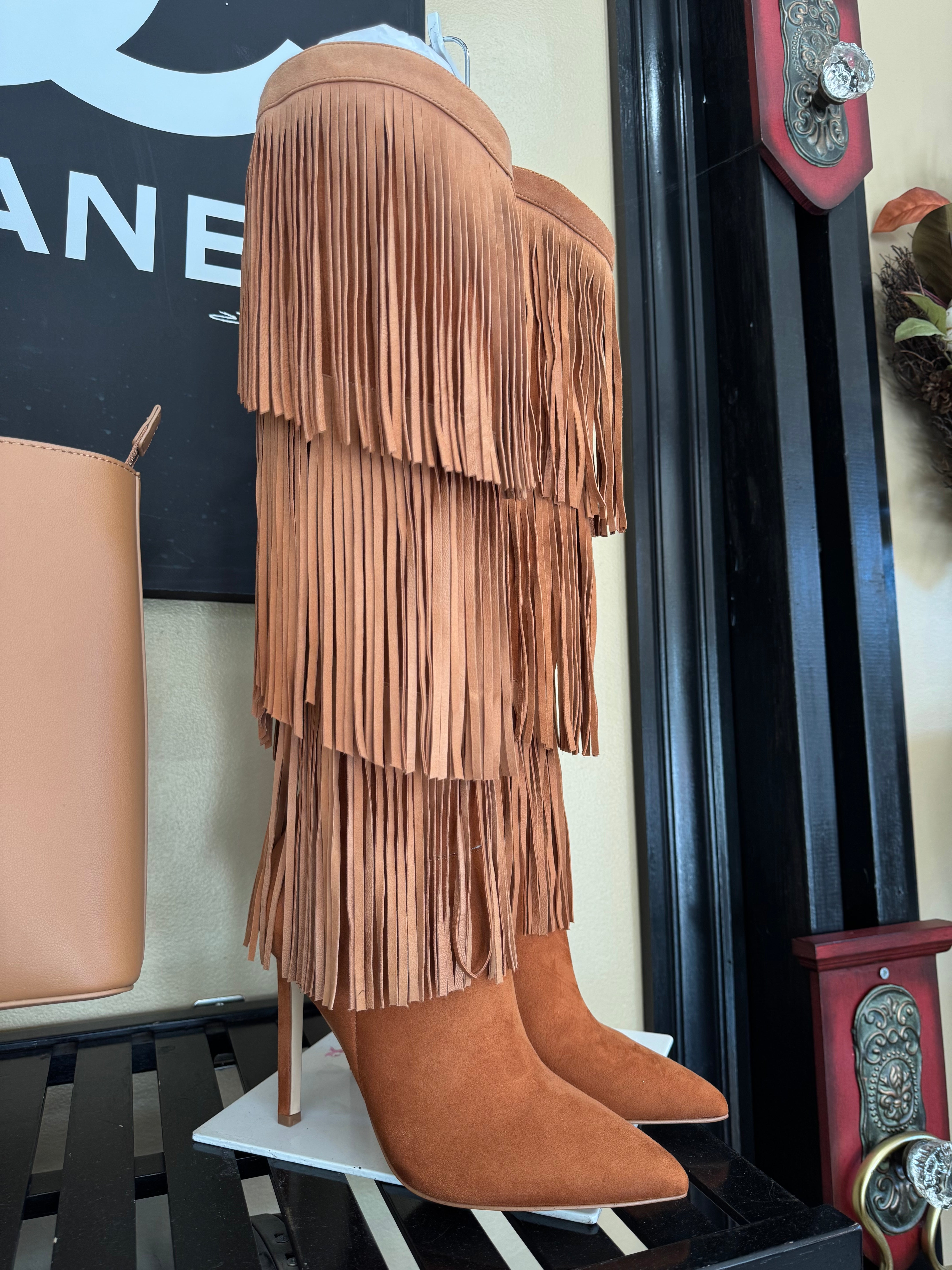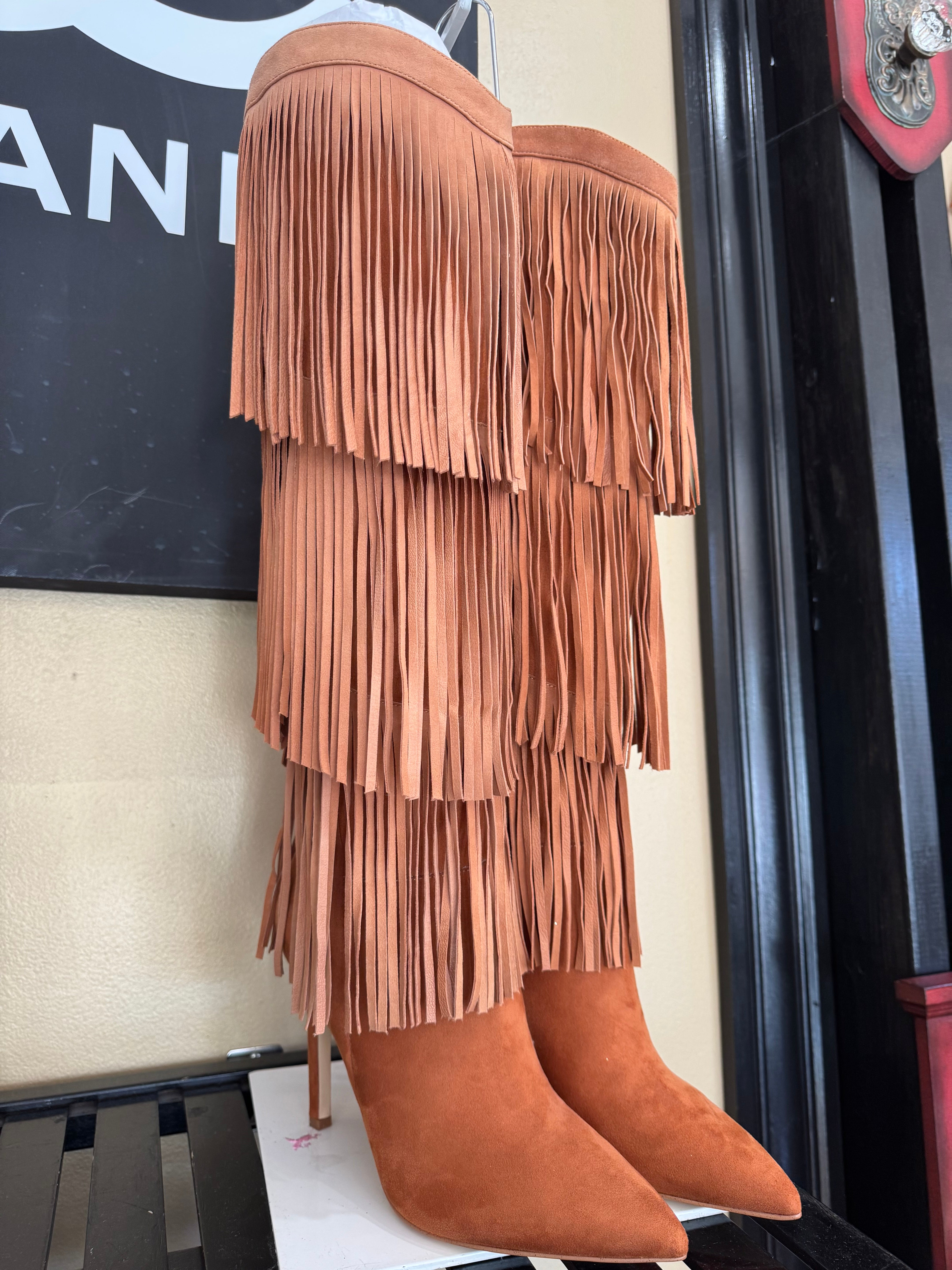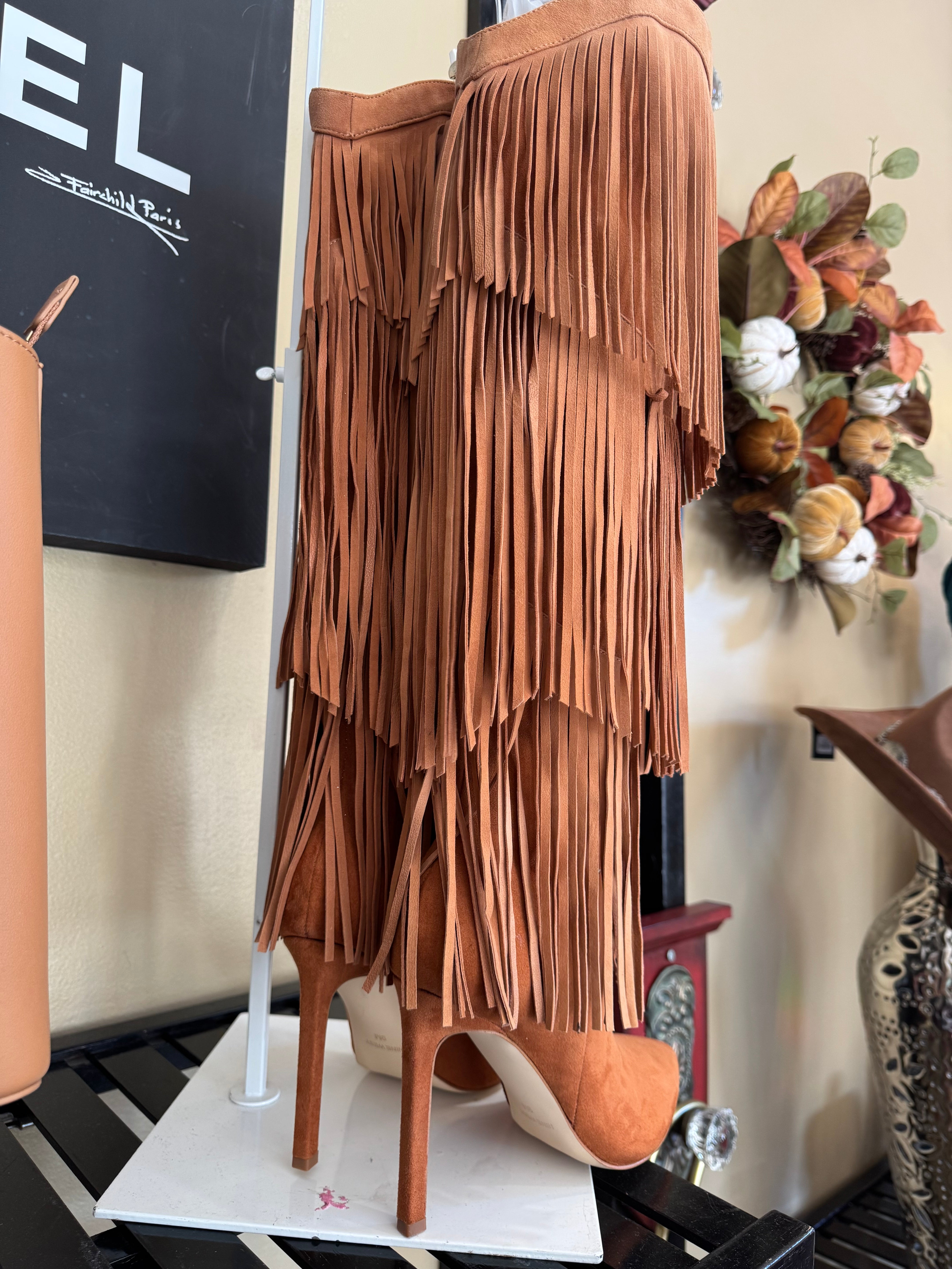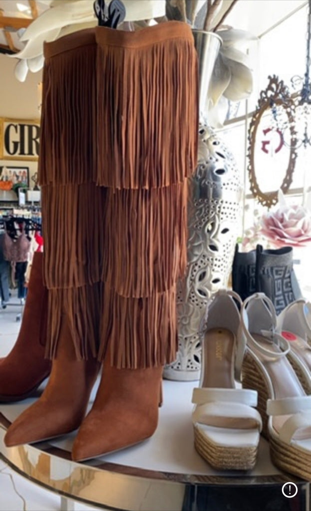 Add some flair to your wardrobe with Nine West's Skinny Heeled Fringe Boots. These tall boots feature a unique fringe detail and a sleek stiletto heel, creating a bold and stylish look. Made by a trusted brand, these boots are both fashionable and well-made.