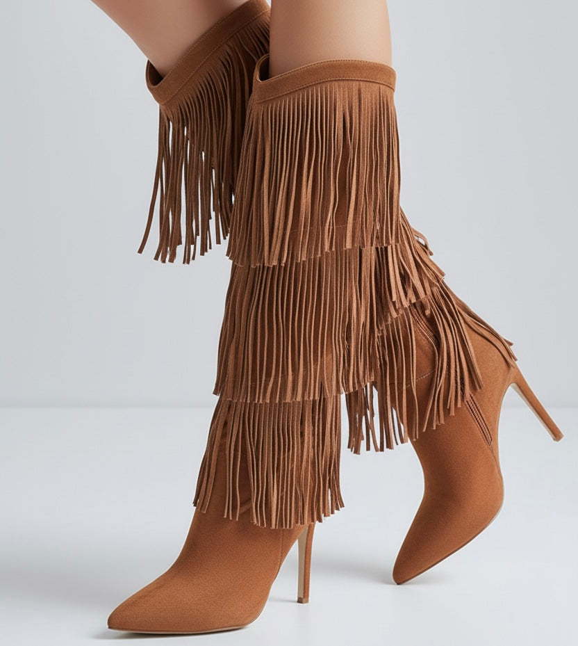 Add some flair to your wardrobe with Nine West's Skinny Heeled Fringe Boots. These tall boots feature a unique fringe detail and a sleek stiletto heel, creating a bold and stylish look. Made by a trusted brand, these boots are both fashionable and well-made.
