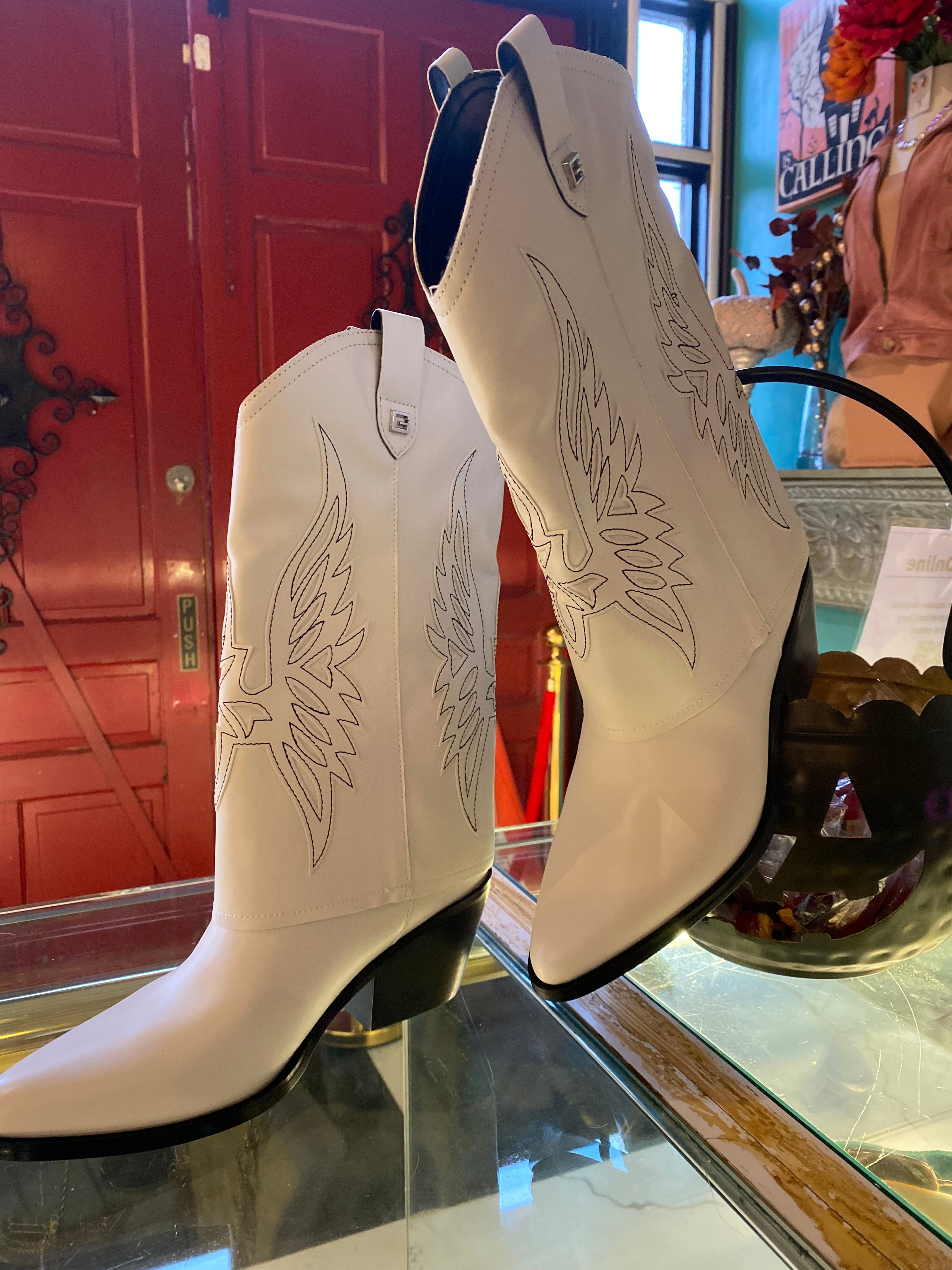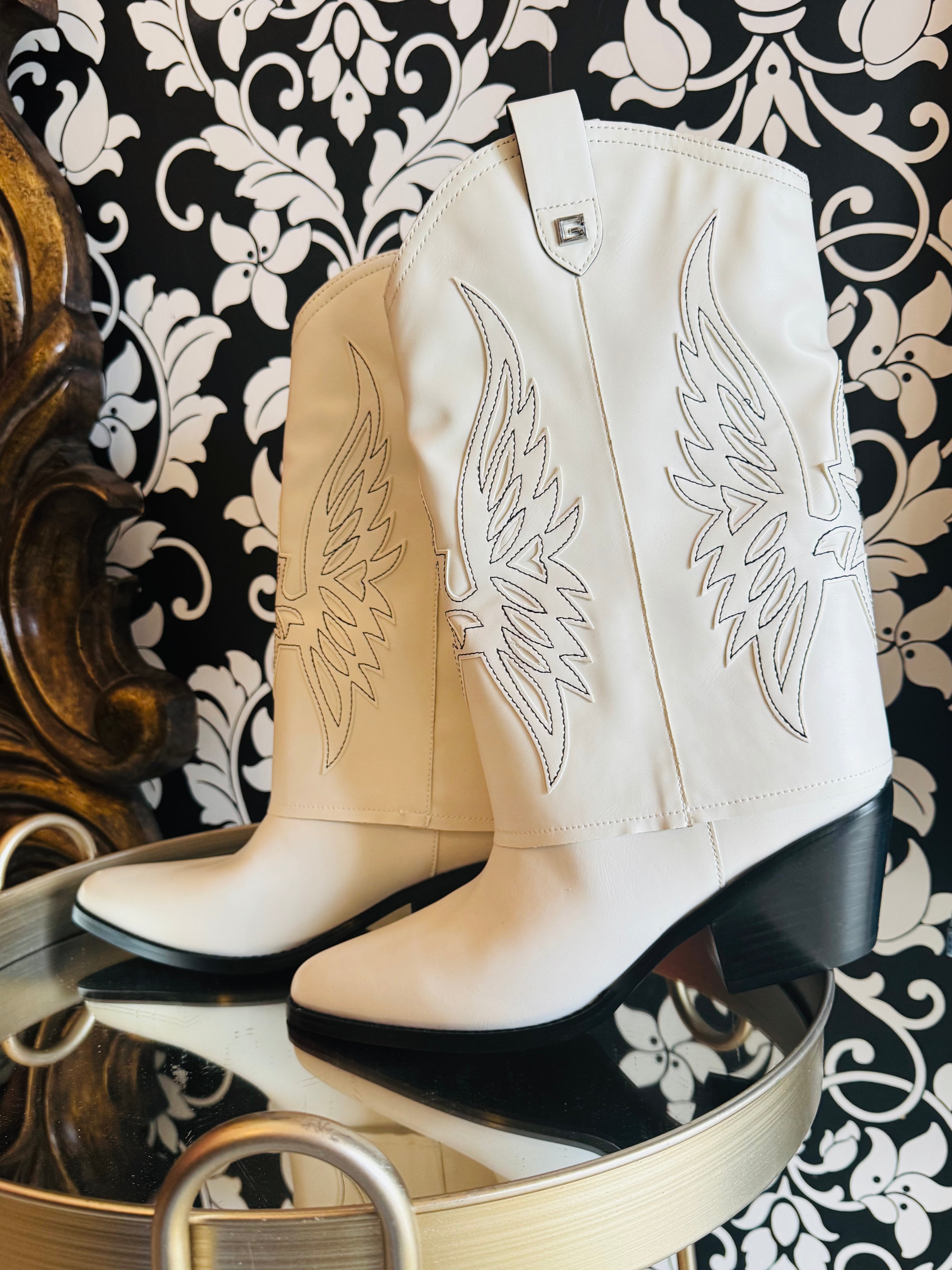 White Fold Over Cowgirl Boots By Guess