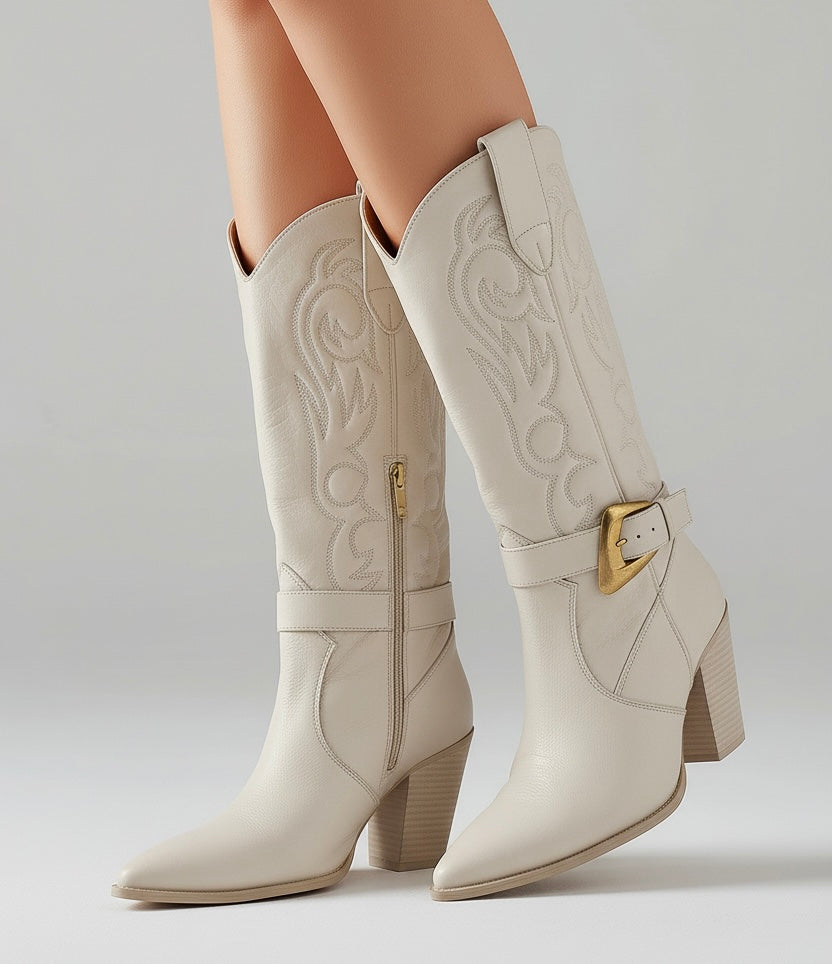 Gold Buckle Biancaa Ivory Cowgirl Boots By Vince Camuto