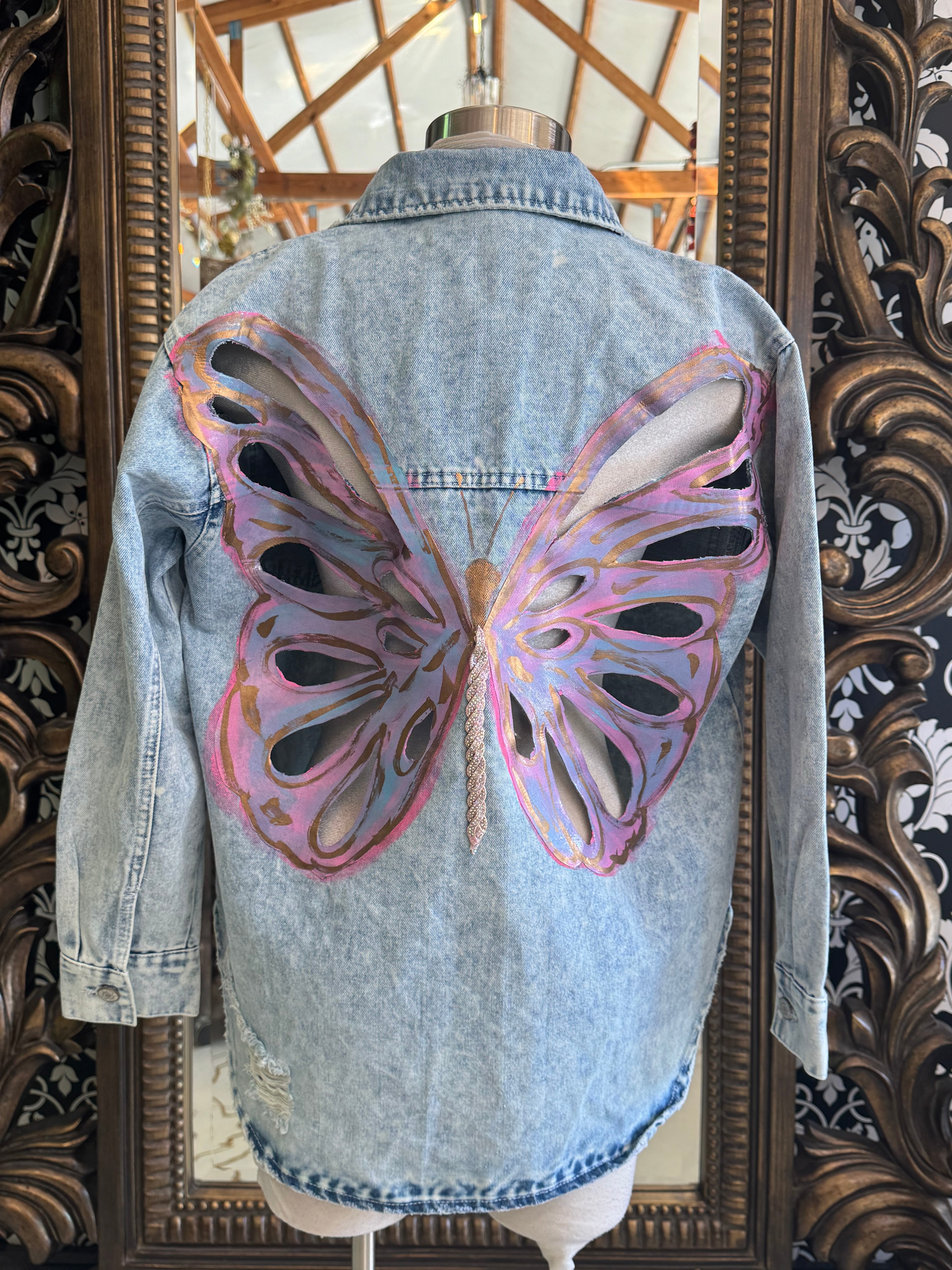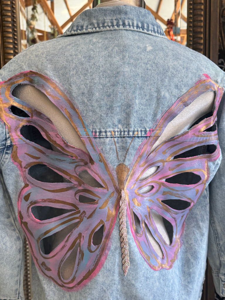 Denim Butterfly Cutout Jean Jacket w/stone Design By Judith March