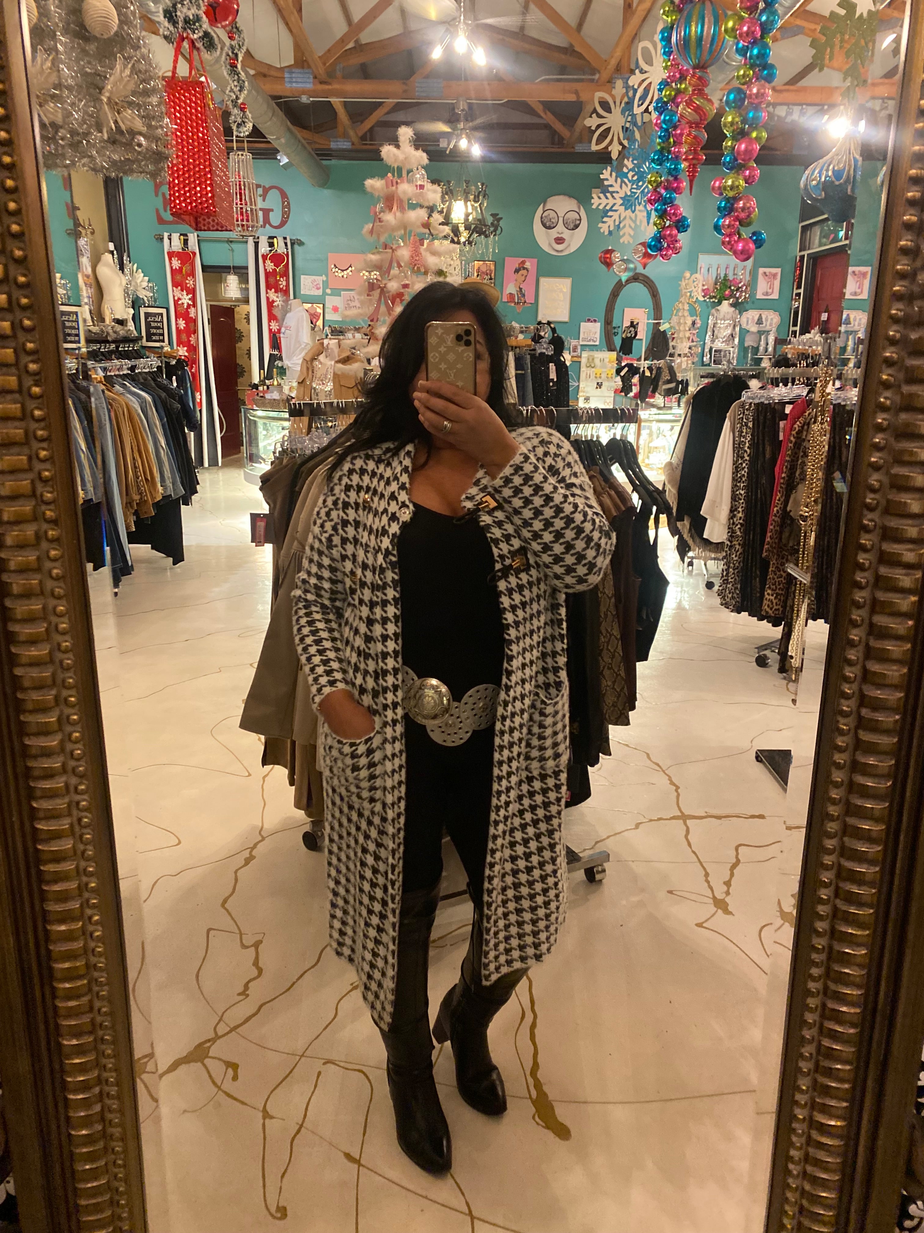 Elevate your wardrobe with our Houndstooth Duster by Love + Luxe. Made with a soft, long-lasting fabric, this versatile duster can be worn buttoned or open. Add a touch of style to any outfit.