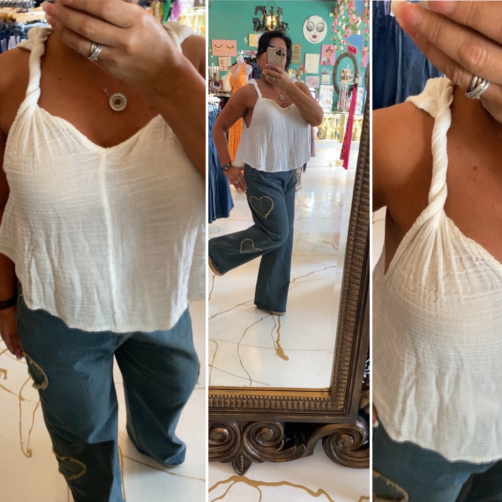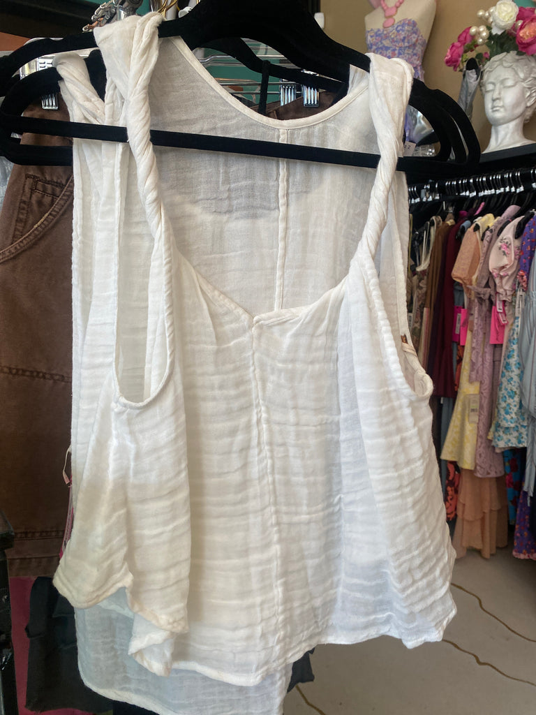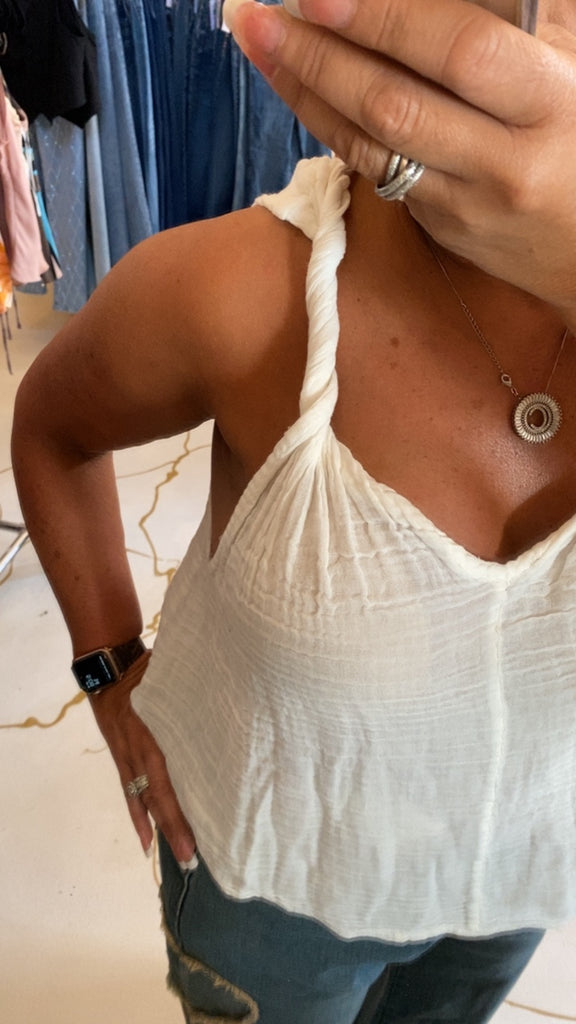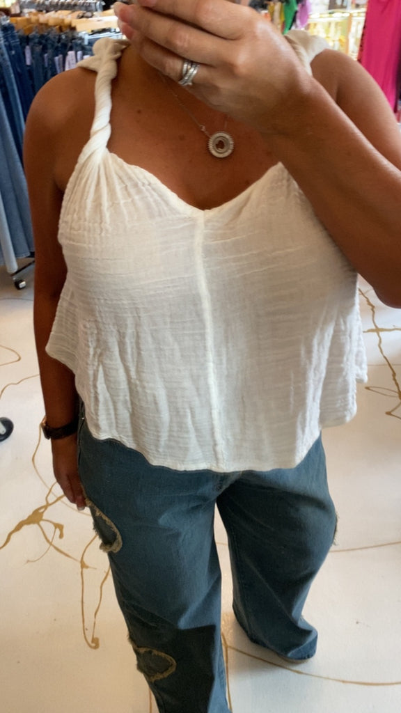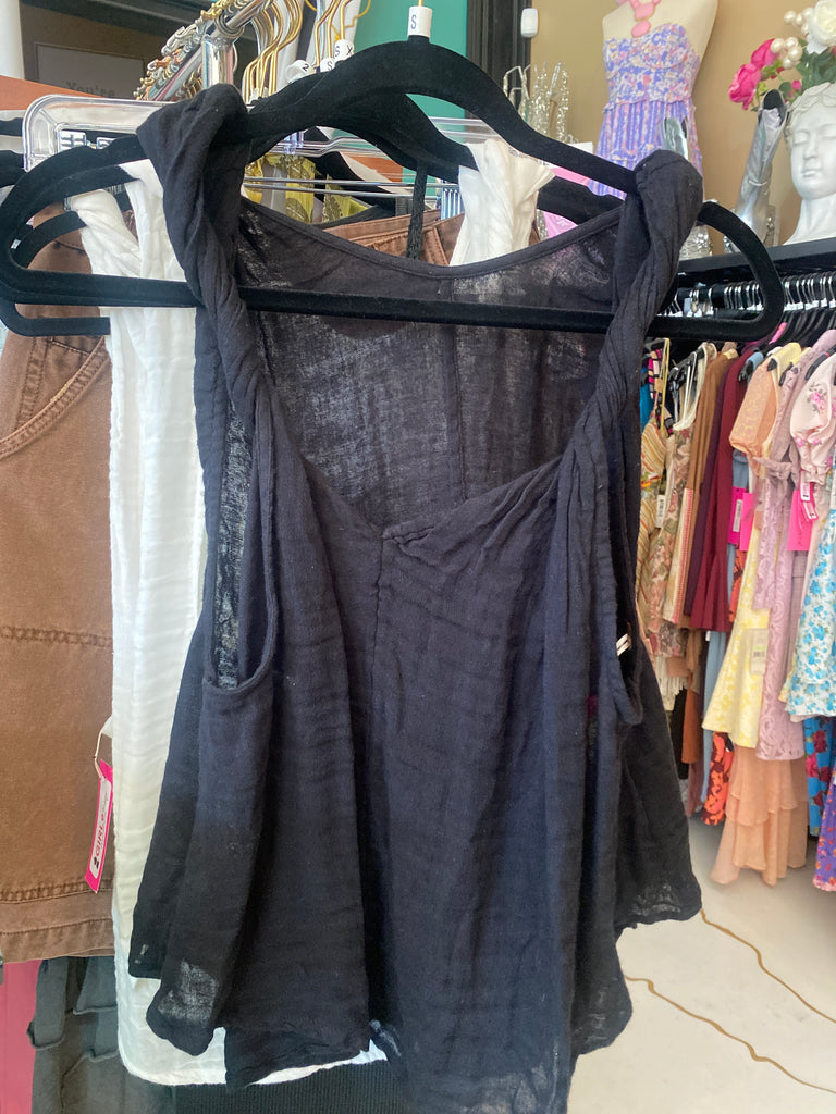 This Twist Front Tank top by Free People offers a unique and stylish twist on the traditional tank top design. With twisted straps and available in both classic white and sleek black, this tank top is perfect for any occasion. The twisted straps also provide a figure-flattering effect, making you feel confident and fashionable.