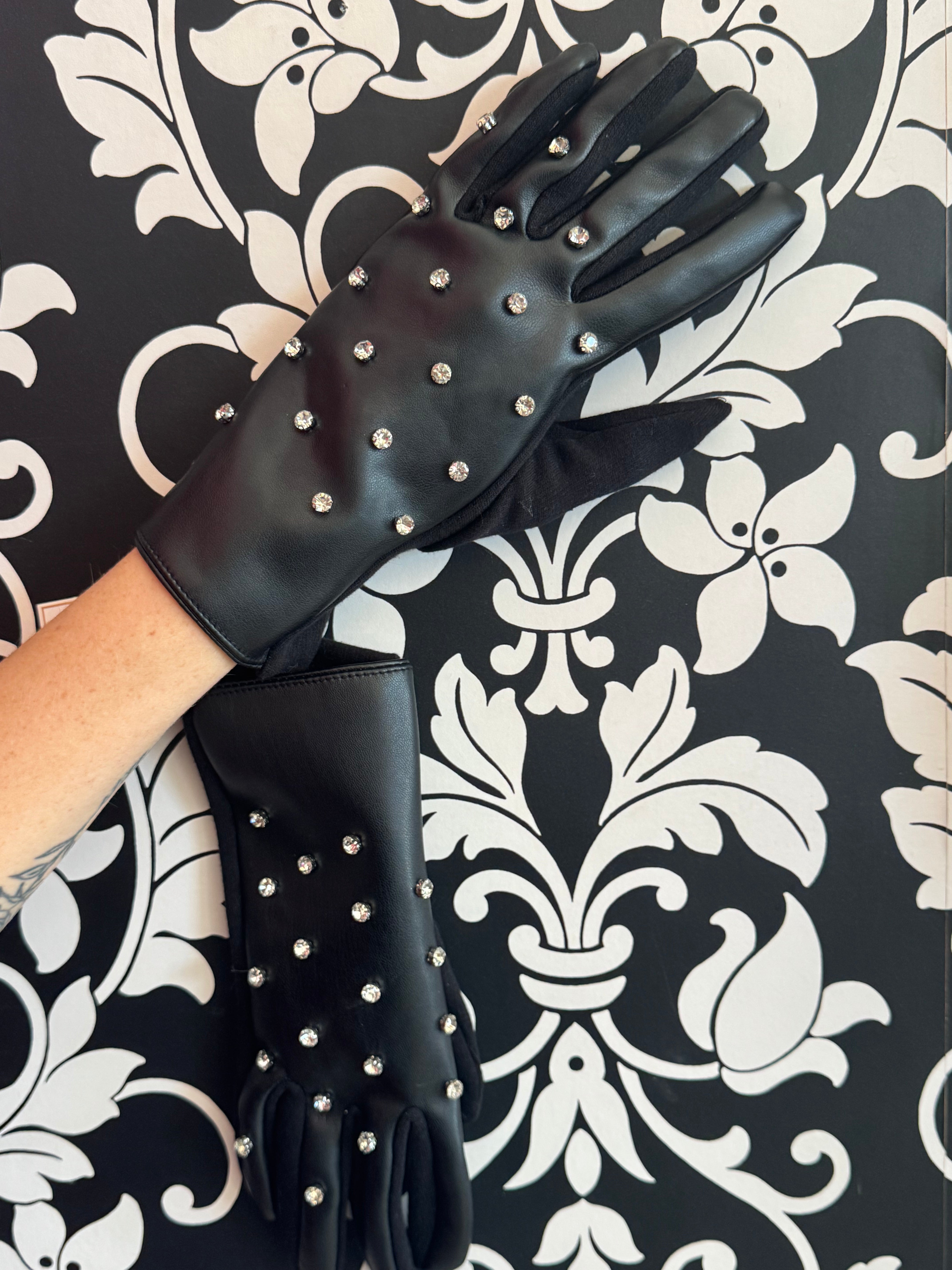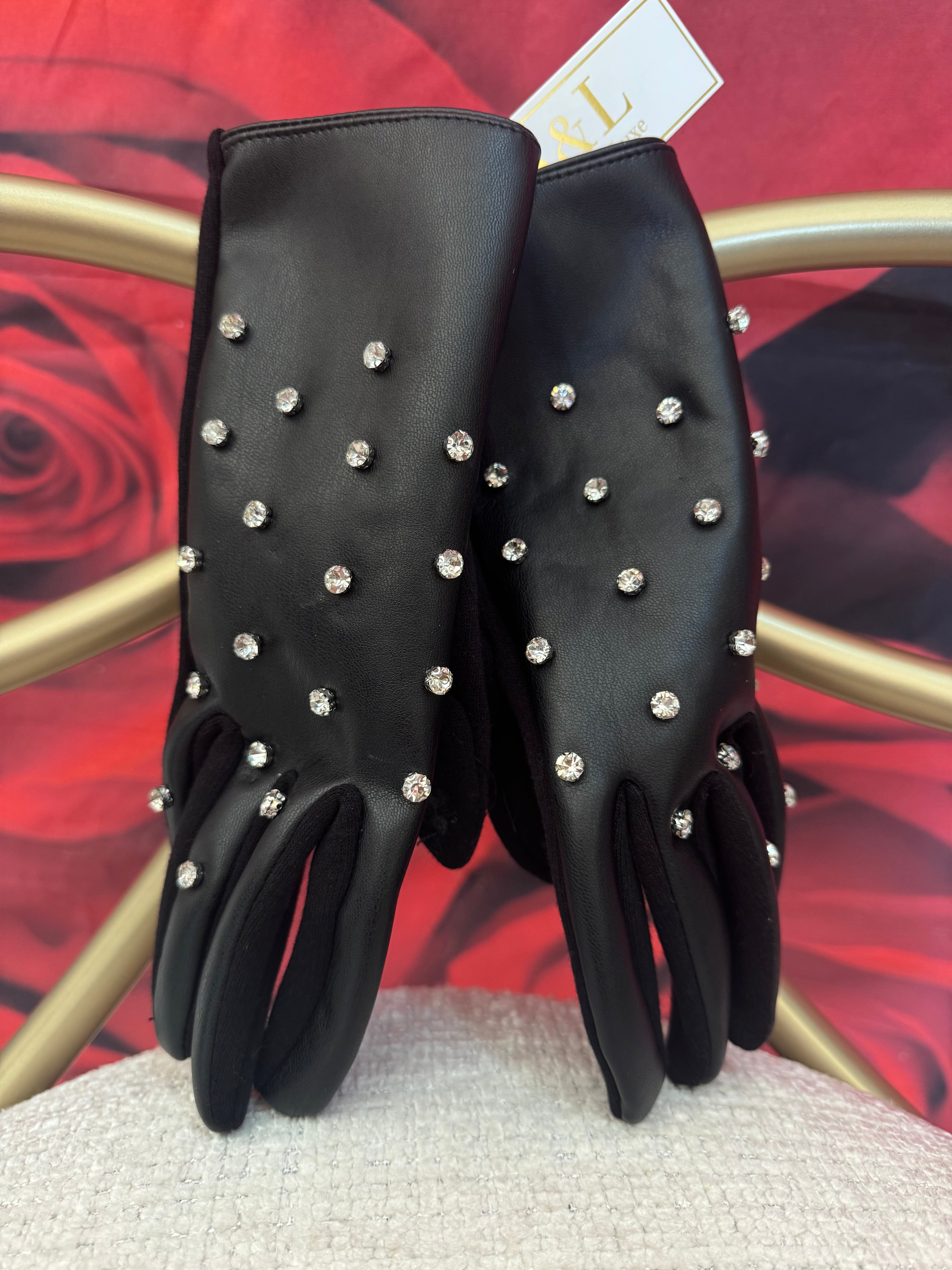 The Studded Gloves by S & L are crafted from durable pleather, featuring strategically placed studs for a stylish yet functional design. The knit fingertip enables seamless interaction with touchscreen devices, ensuring convenient use without sacrificing warmth or protection. These gloves effectively combine contemporary aesthetics with practical utility.