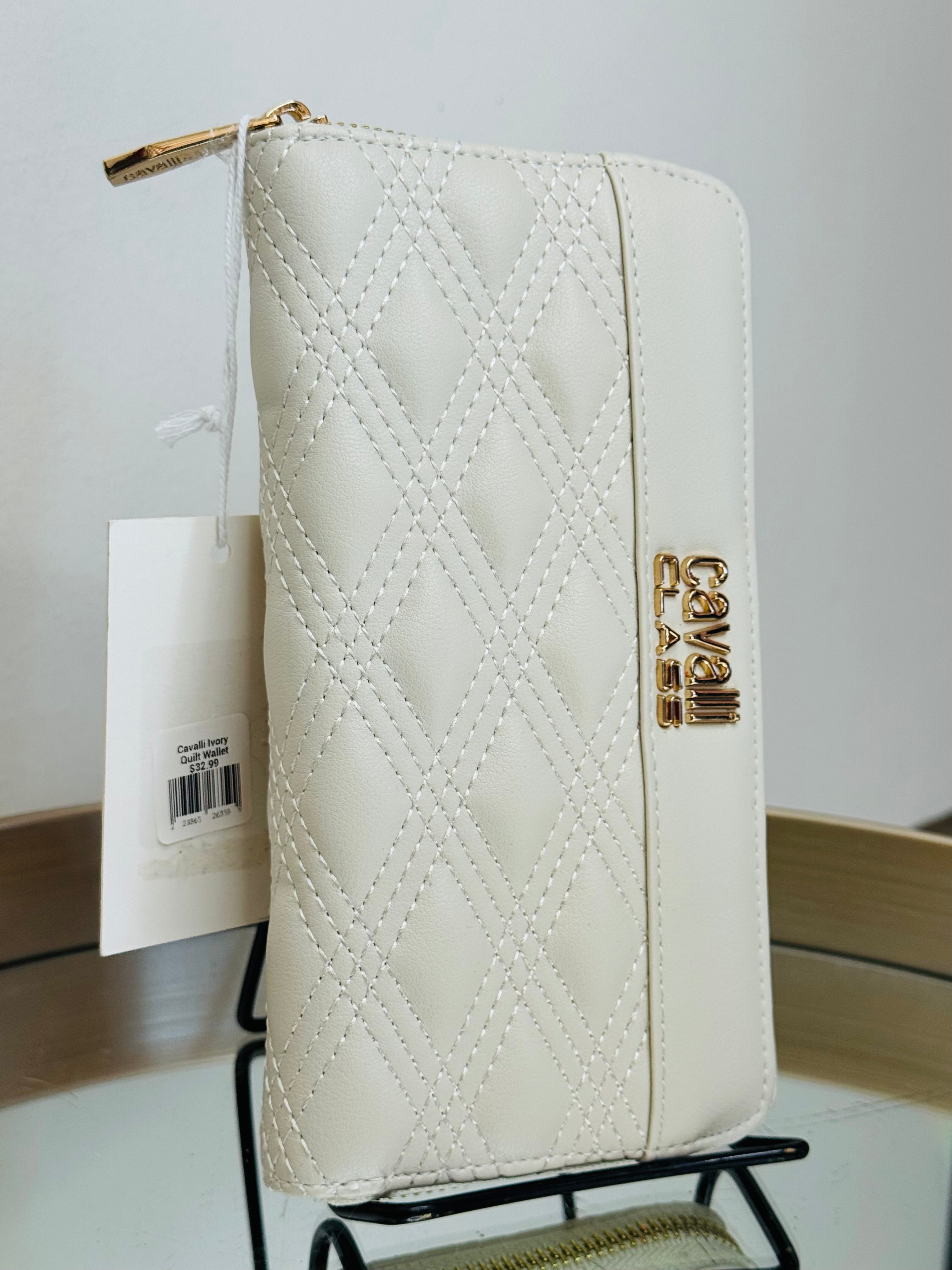 The Ivory Quilt Wallet by Cavalli features a distinctive quilt design that combines aesthetics with functionality. Its spacious interior accommodates multiple cards, enhancing organization. This wallet not only serves as a stylish accessory but also promotes efficient card management, optimizing user convenience.