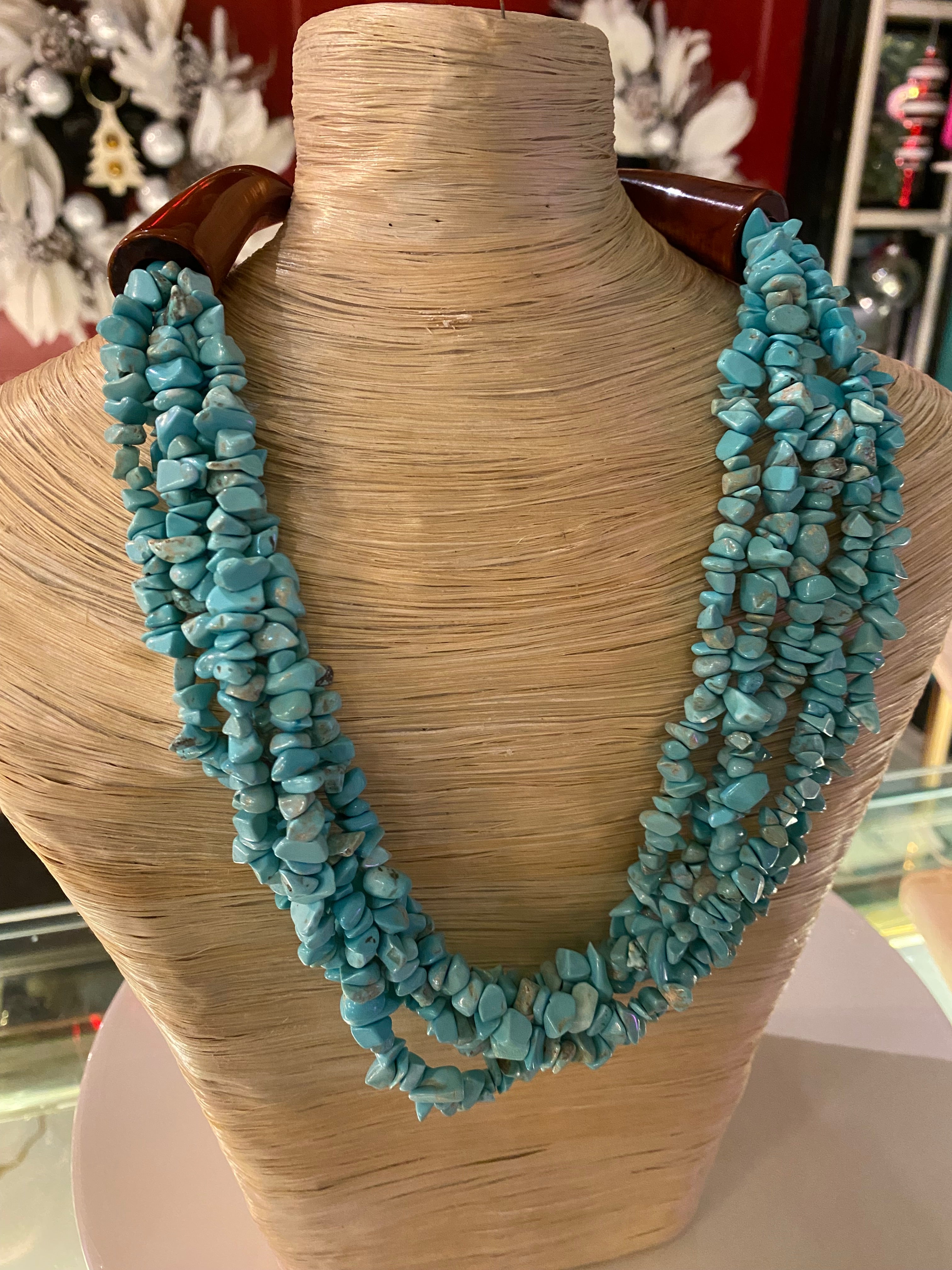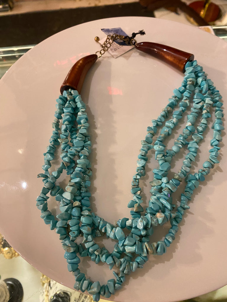 5 strain Turquoise Stone Necklace w/ Brown horn Design - Stone Rock - Lobster Claw Closer