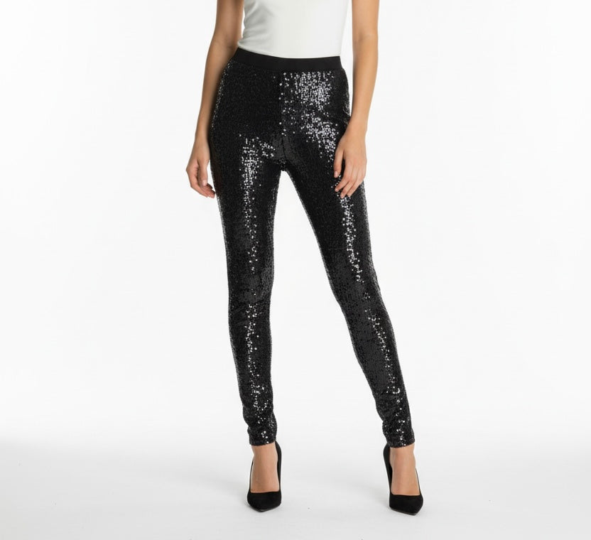 The Sequin Legging pants by Express feature a skinny leg design complemented by an elastic waistband. This combination offers both comfort and a secure fit, allowing for ease of movement. The sequins add a visually striking element, making these leggings suitable for both casual and formal occasions.