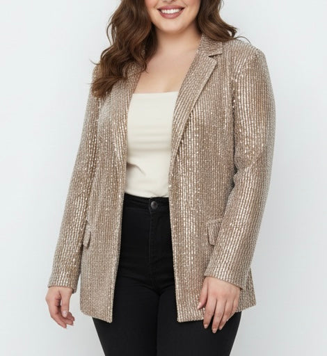 Transform any look with the Messini Sequin Blazer. This sequin jacket is the perfect statement piece to add a touch of extravagance to your style. With its sparkling sequin finish, you're sure to make a lasting impression. We also Have the Matching palazzo pants.