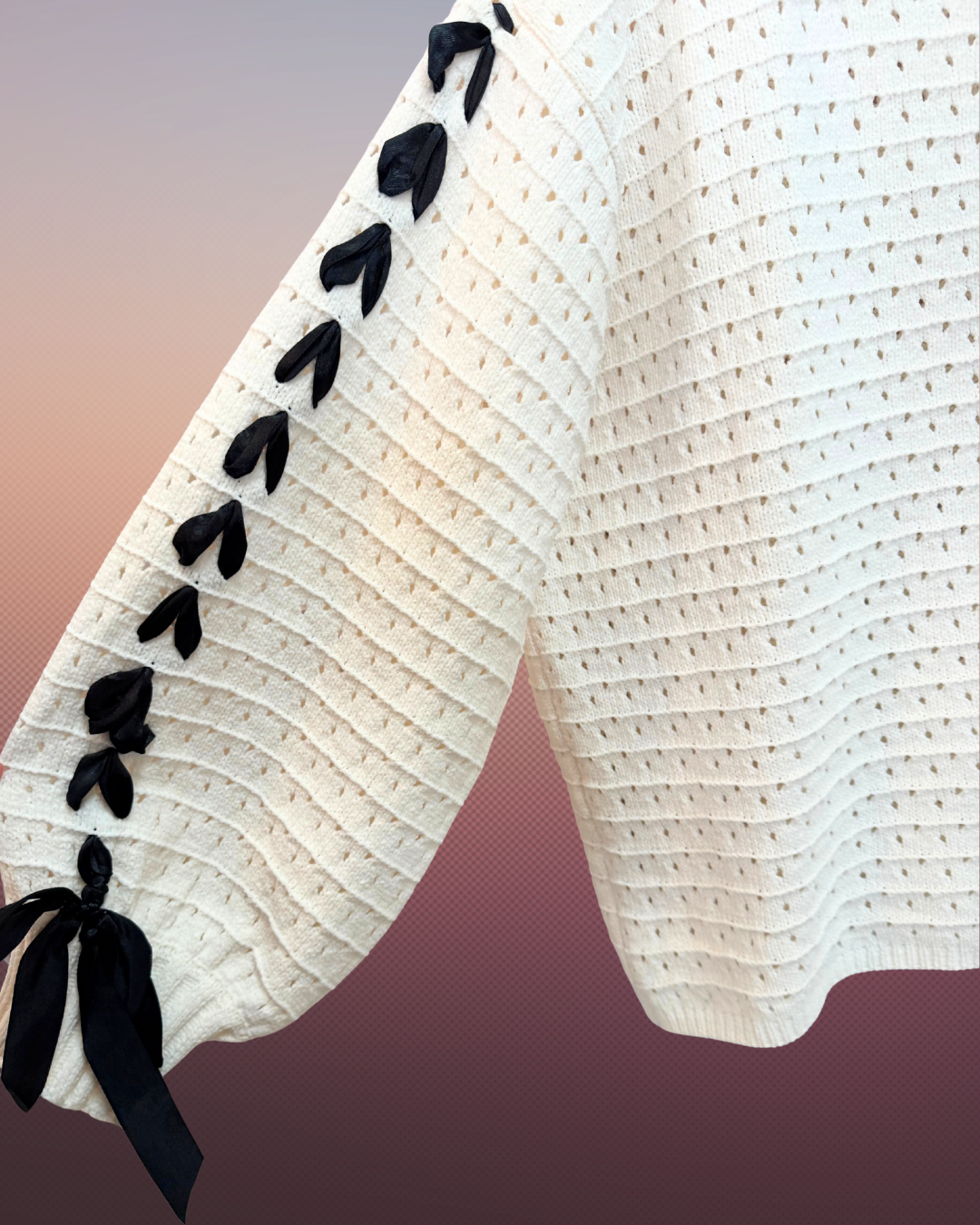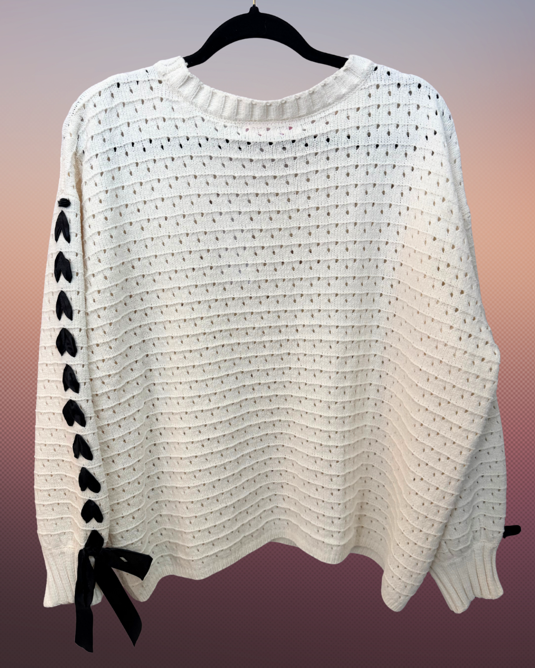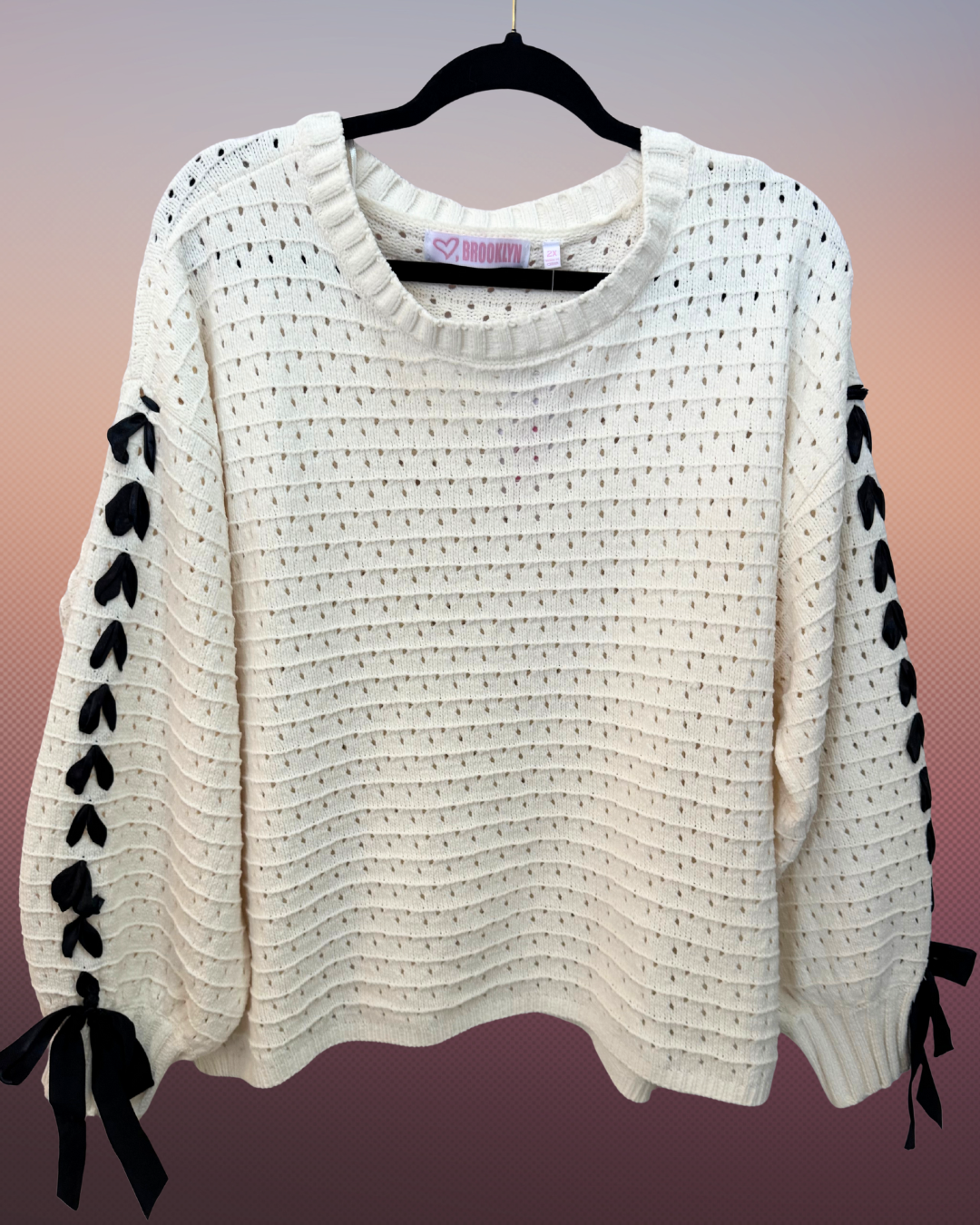 Ivory Ribbon Sleeve Hole Sweater By Brooklyn