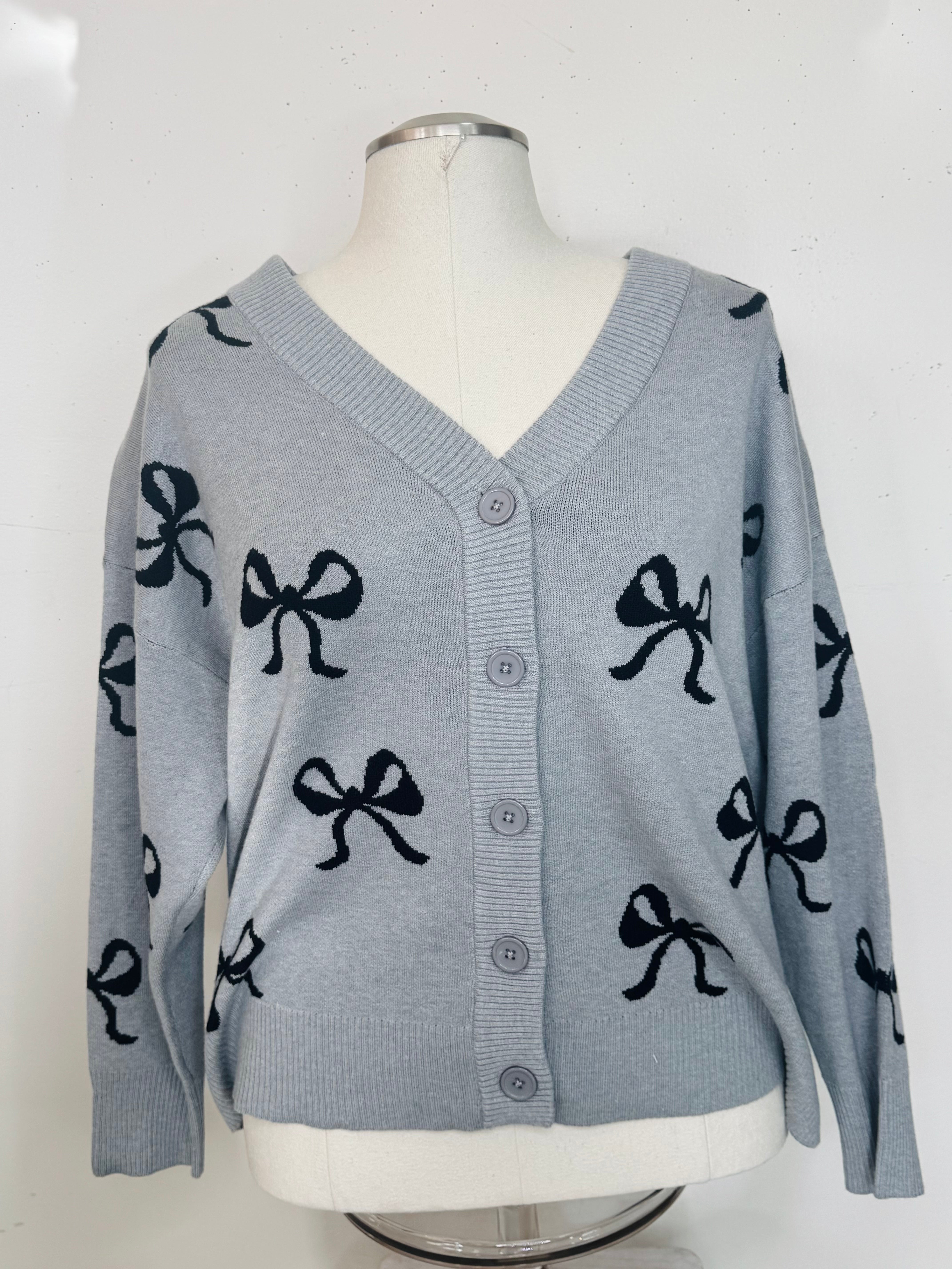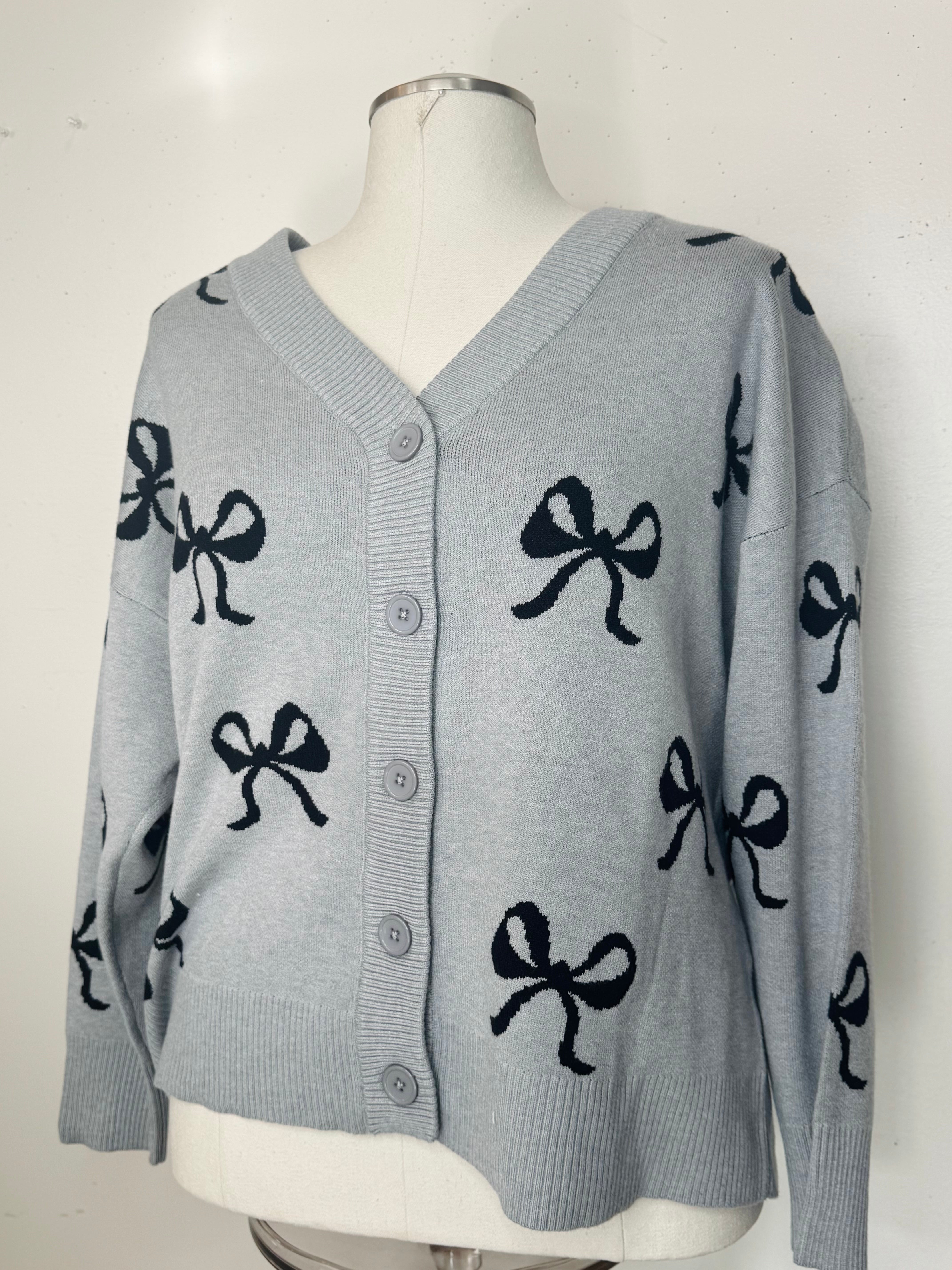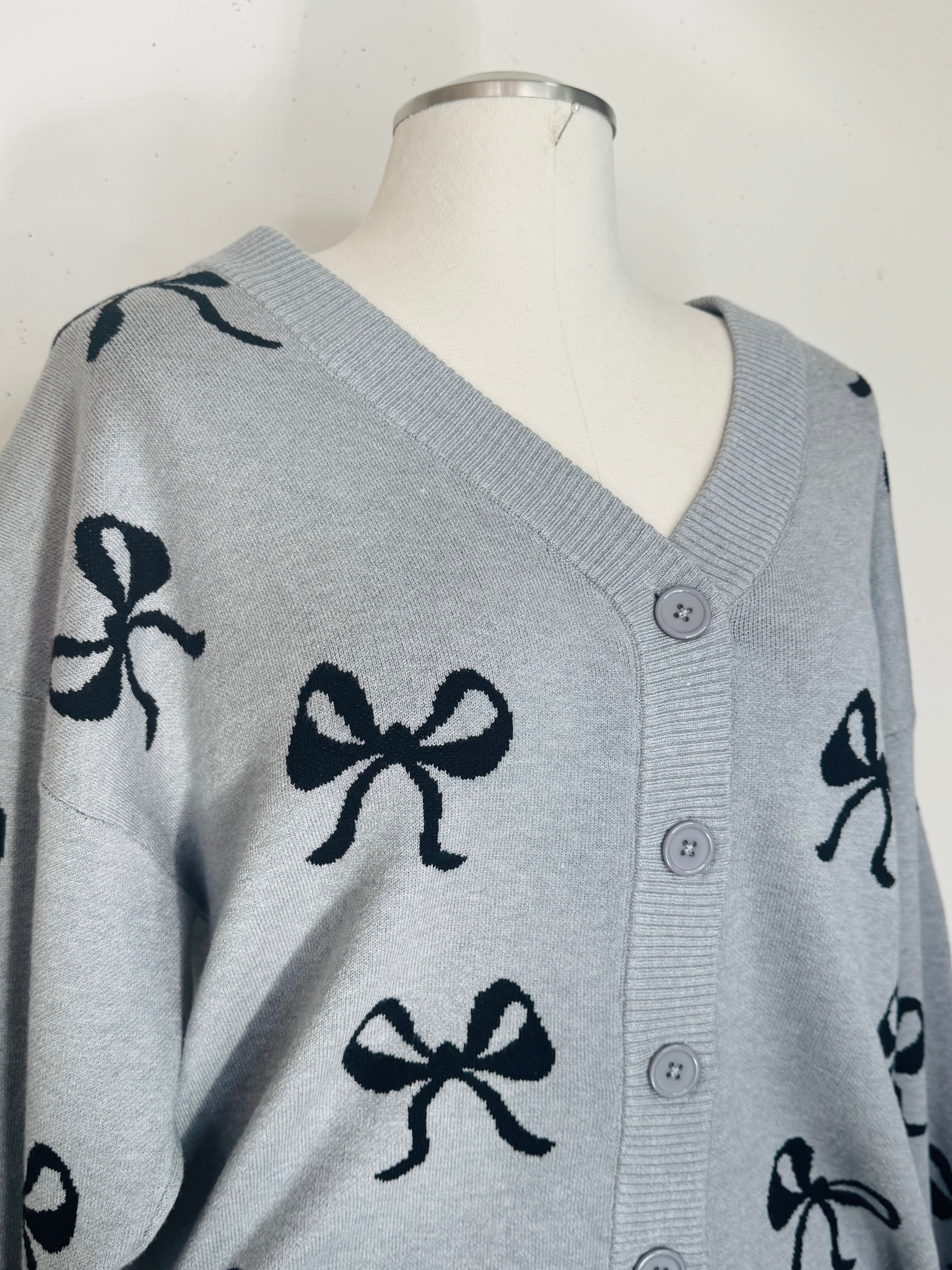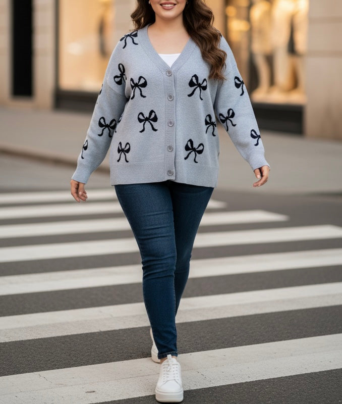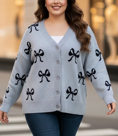 Plus Size Sweater Bow Cardigan By Nikka K