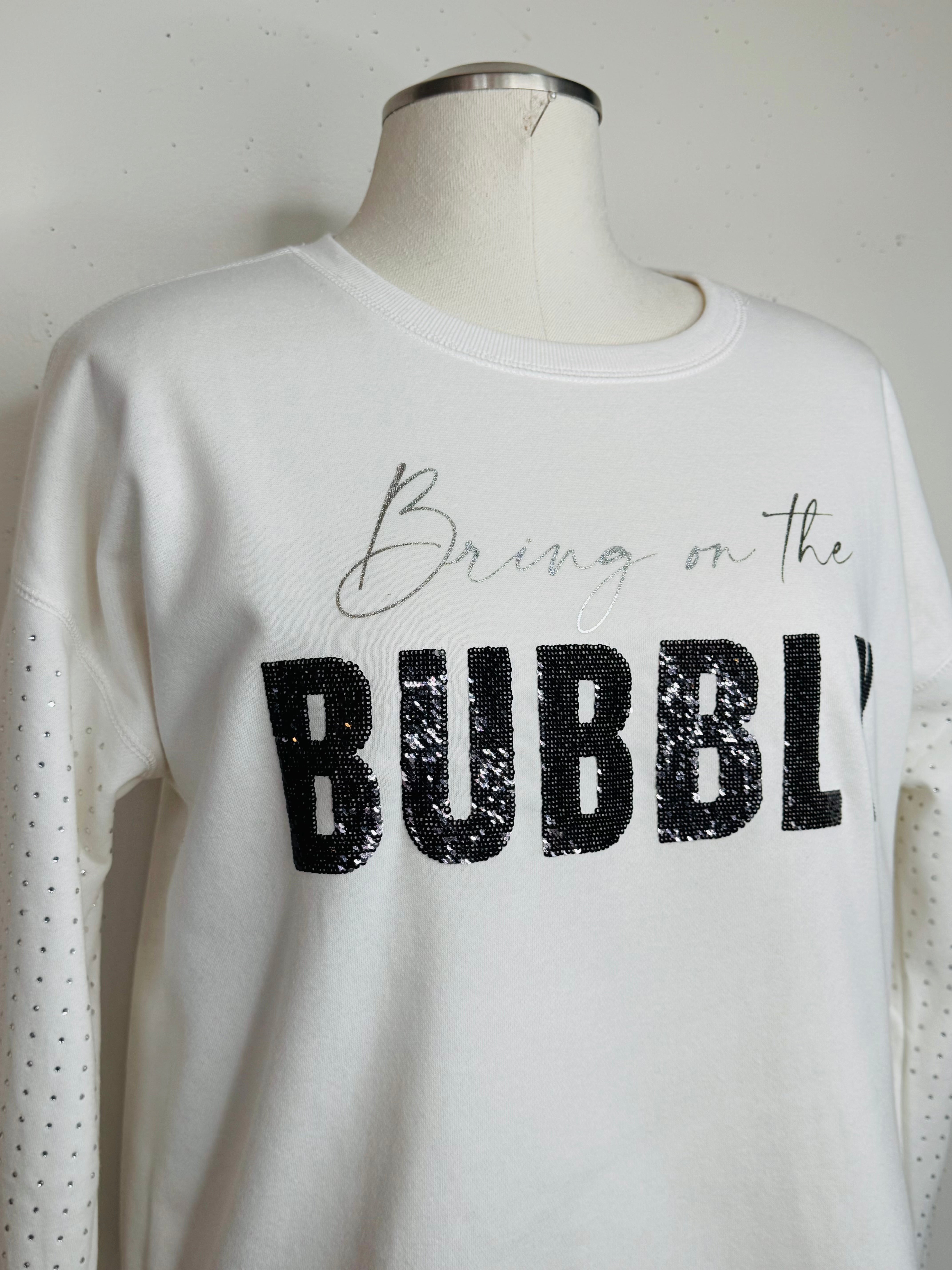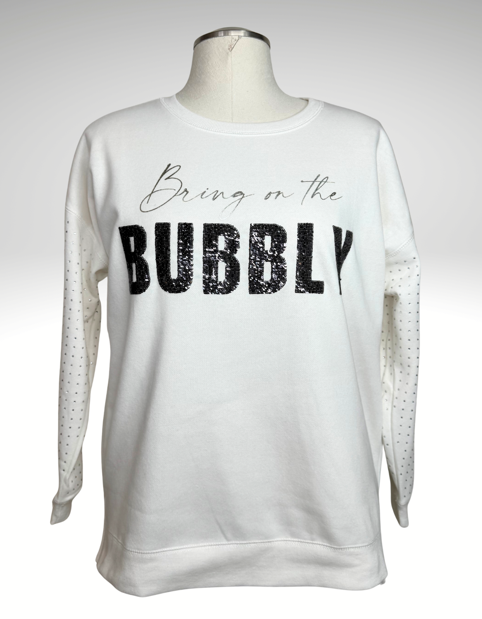 Pop the confetti, because the Bring On The Bubbly Top by Wild K is here to add a sprinkle of sparkle to your wardrobe! Featuring the cheerful phrase “bring on the bubbly” in dazzling sequins and rhinestones, this warm top is perfect for those cozy nights when you want to celebrate—preferably with a fizzy drink in hand (or two!). Cheers to style!