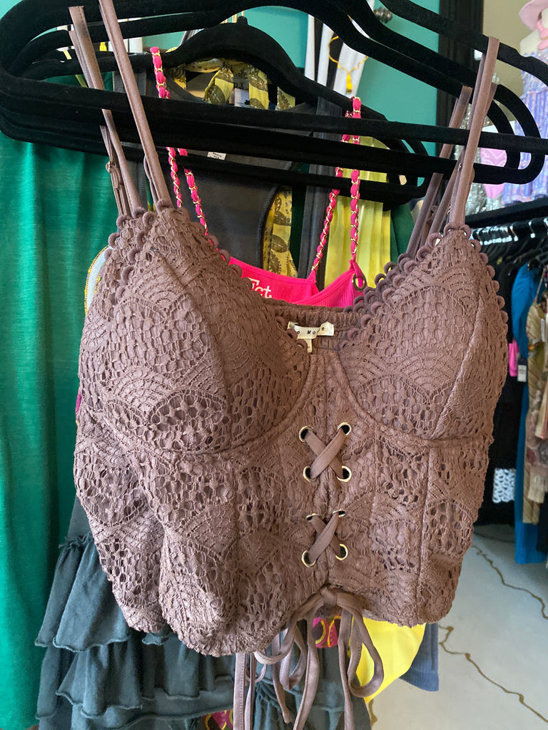 "Get ready to be haute and on-trend with the Haute Monde Brown Crochet Top! This super cute top features a trendy brown crochet design and adjustable straps for a perfect fit. Show off your playful style and stand out from the crowd in this must-have piece."