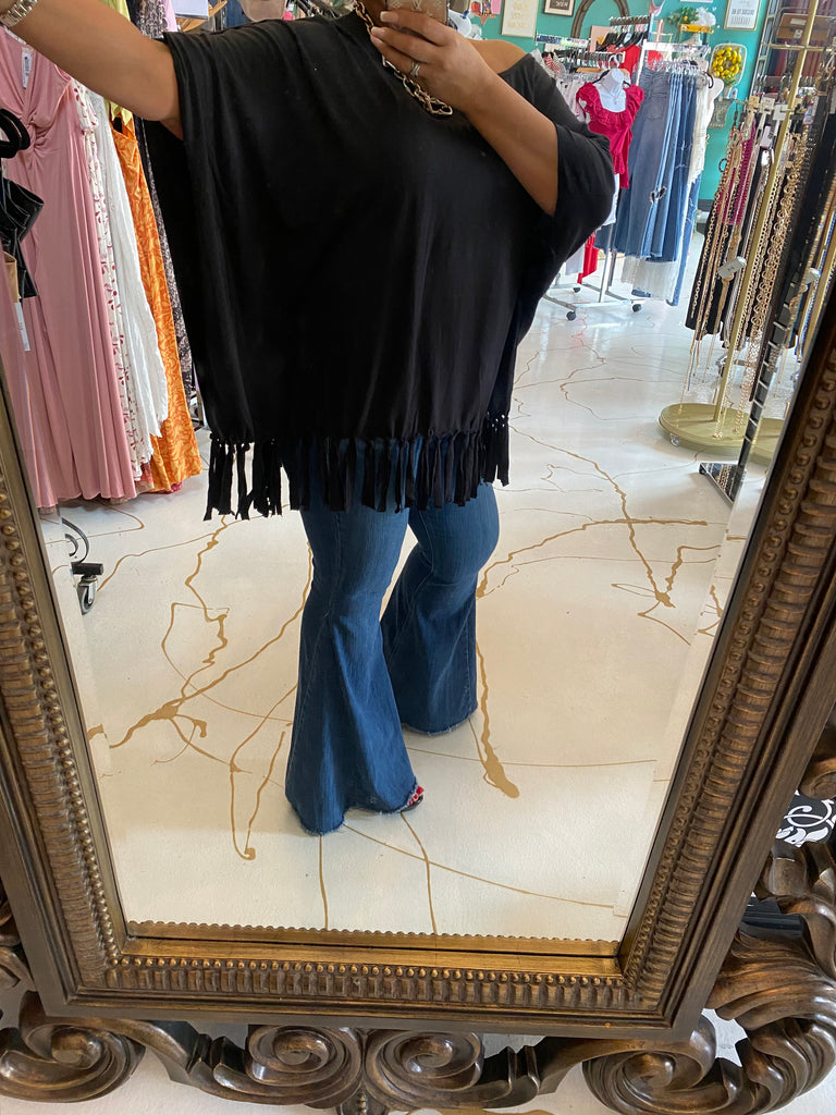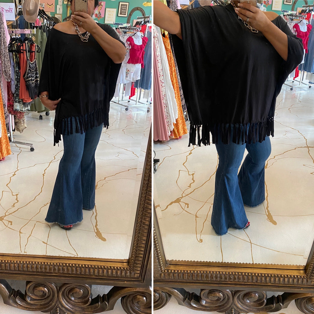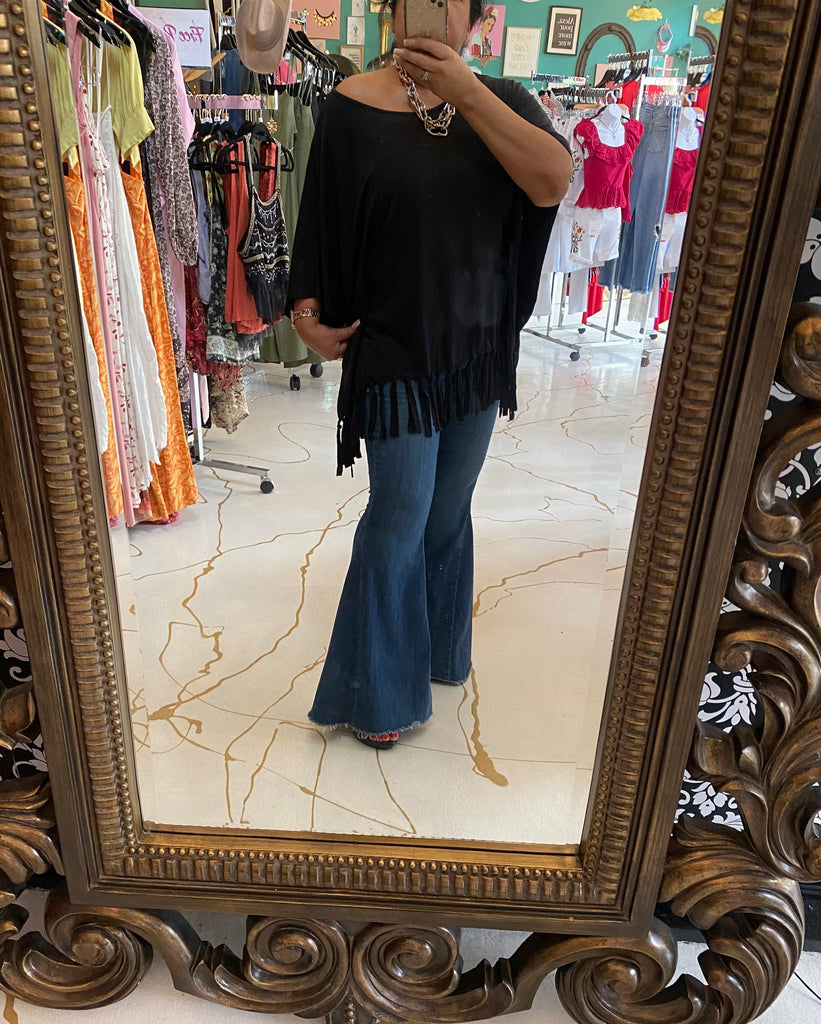 This Hottie can be worn as a Bikini Cover or Top as Shown with Jeans - Great Stretch Fabric - Bat Wing Sleeve Style & Botton Tassel Design