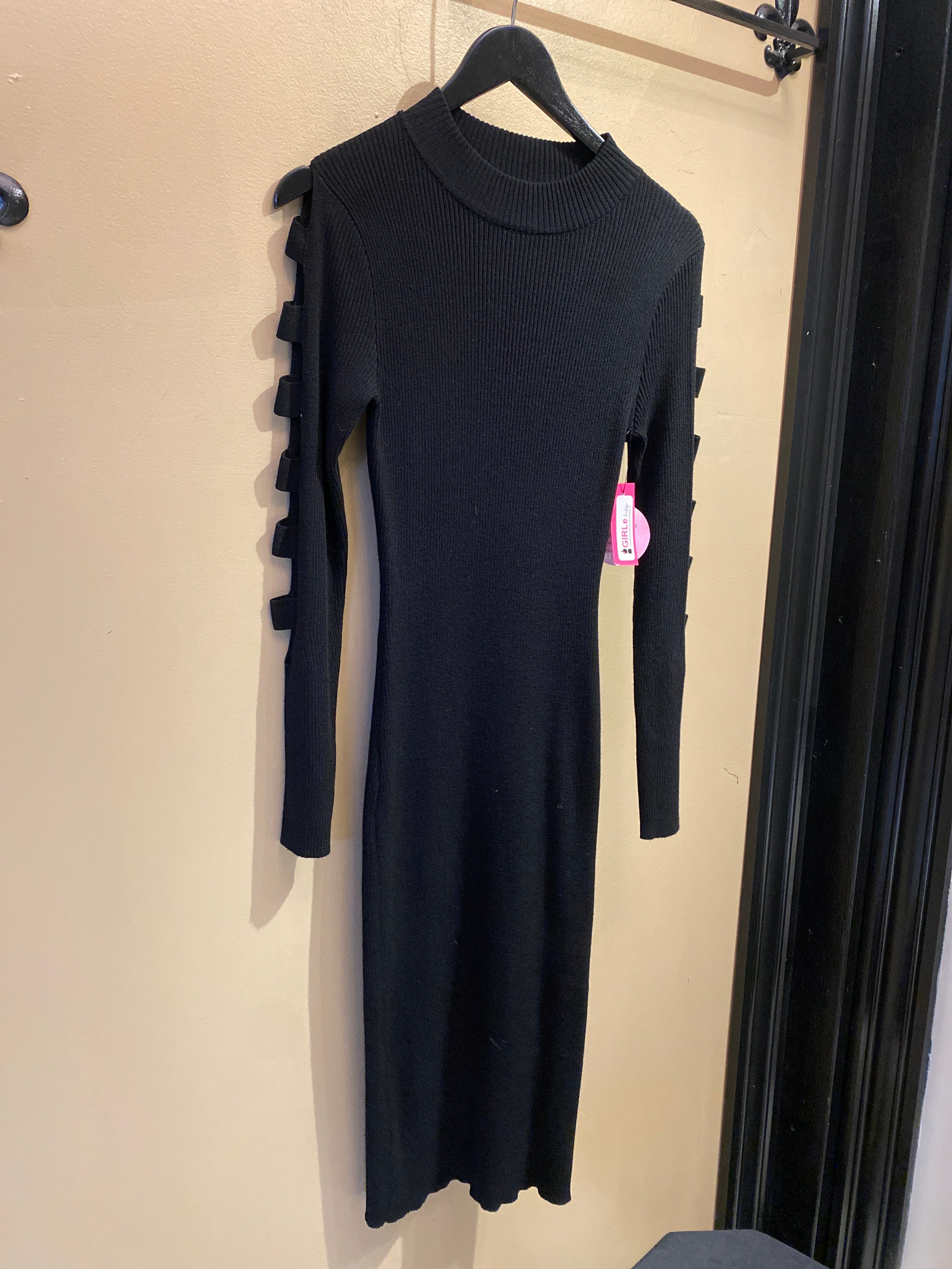 Black Open long Sleeve Knot Dress By Always Love
