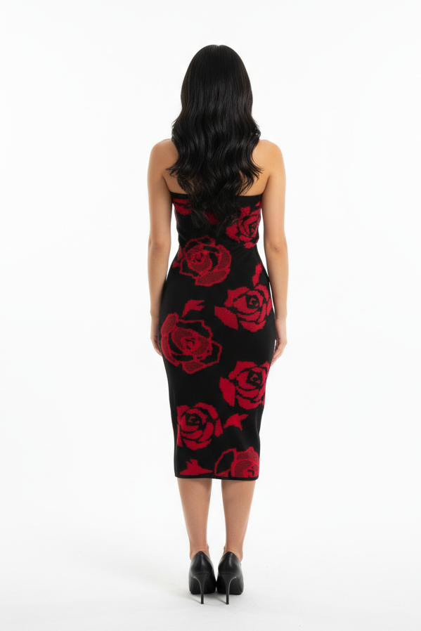 Step into style with the Rose Knit Dress by Madden Girl. This lovely strapless sweater dress features a charming rose pattern, making it perfect for both casual outings and special occasions. Enjoy the comfort of the soft knit while showcasing your unique sense of fashion.