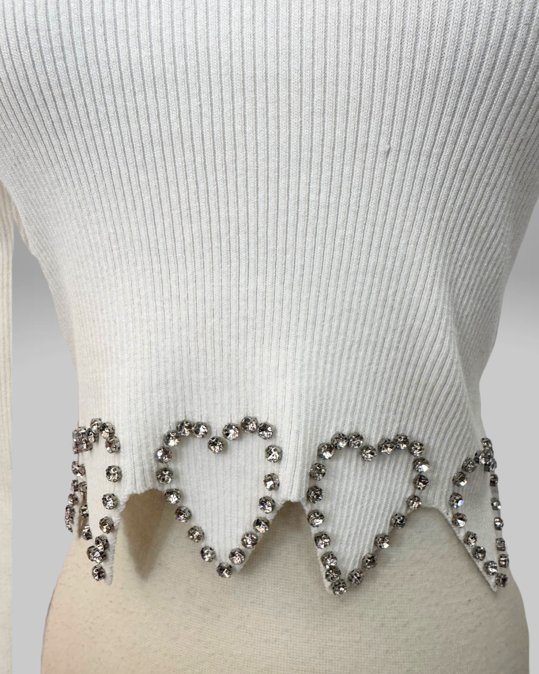 "Love your look in our Heart Stone Bottom Top by LC. This beautiful cropped white top features a striking stone heart, adding a touch of whimsy to any outfit. Perfect for showing off your playful side. Get it now!"