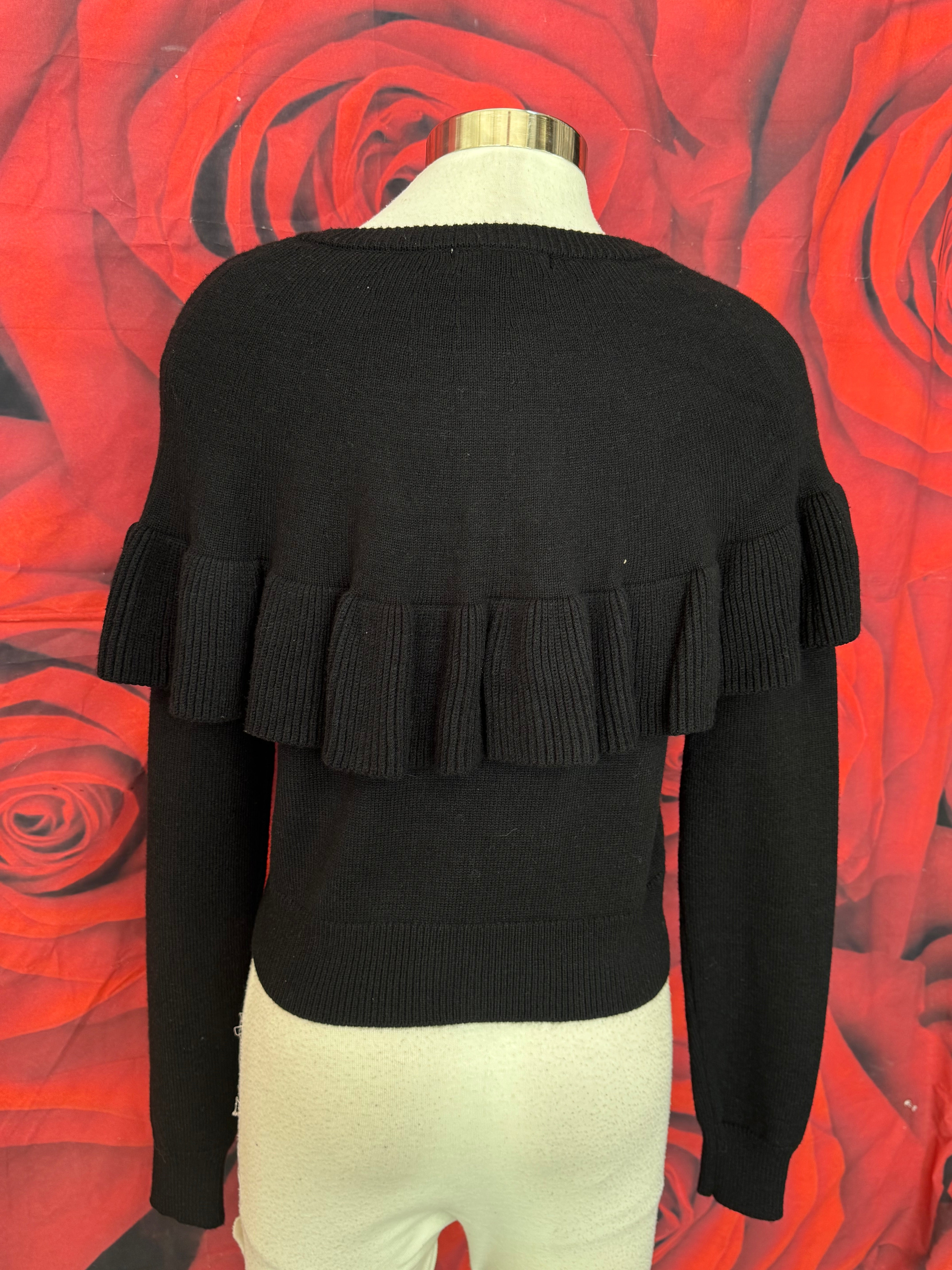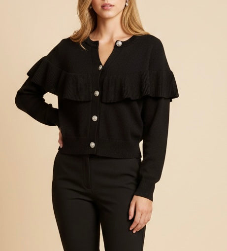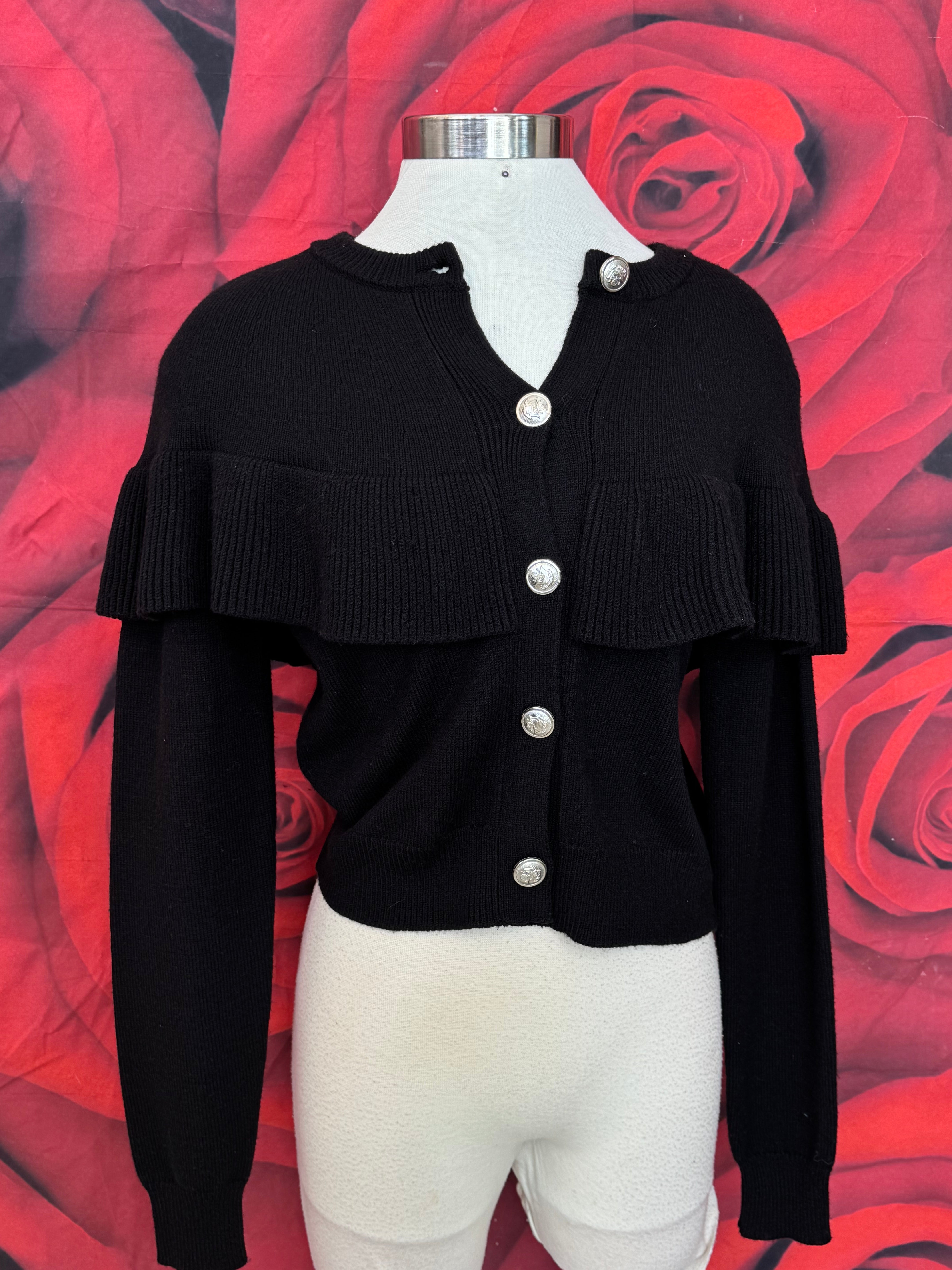 Black Button Up Sweater w/Flounce Design By Vigoss