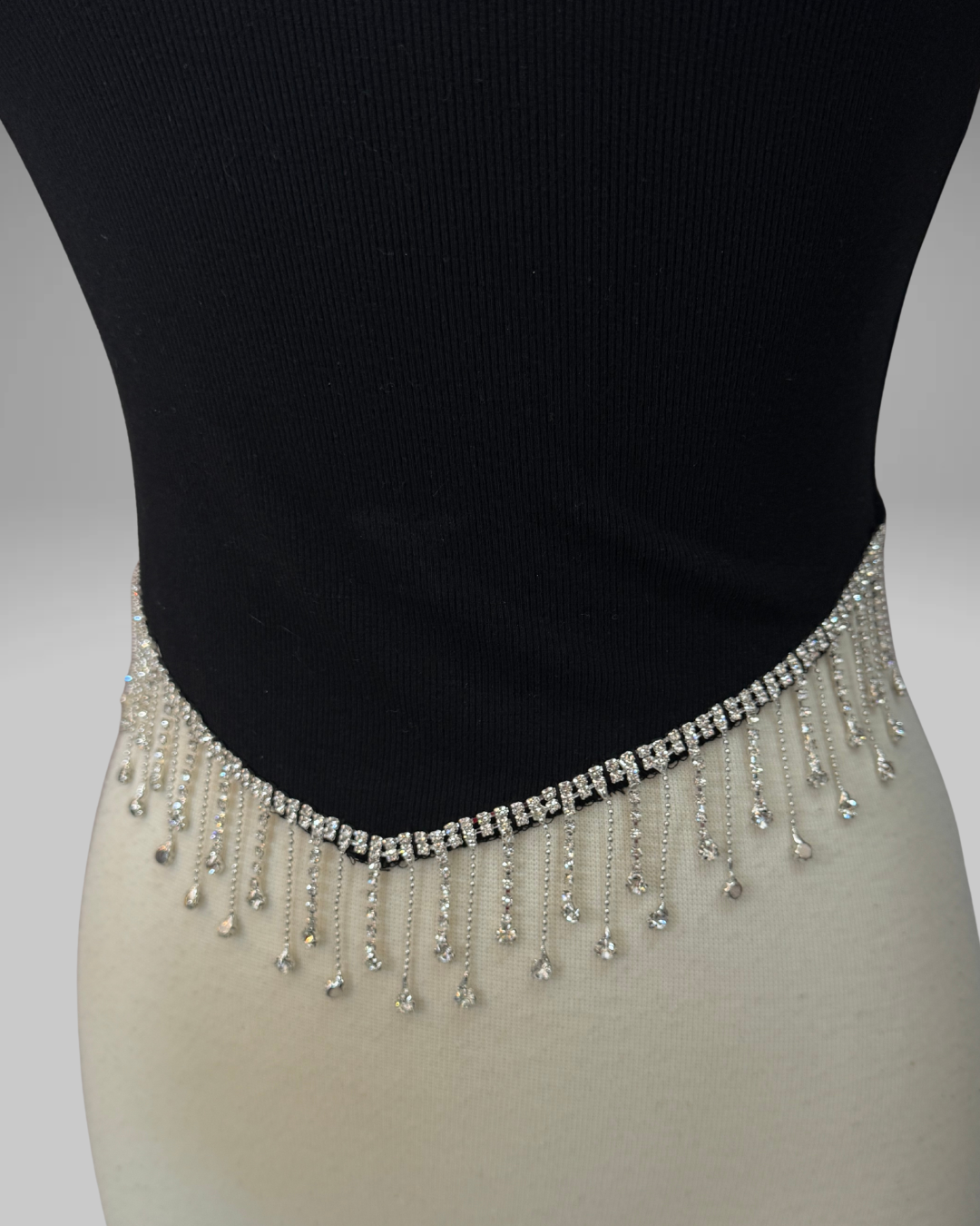 This cropped Ivorytop features a stylish tassel-studded Rhinestone bottom, adding a unique touch to any outfit. Crafted from high-quality materials, this top is both trendy and comfortable. Perfect for pairing with high-waisted jeans or skirts, it's a versatile addition to any wardrobe. Upgrade your style game with the LC Stone Bottom Crop Top. Plenty of Stretch!!