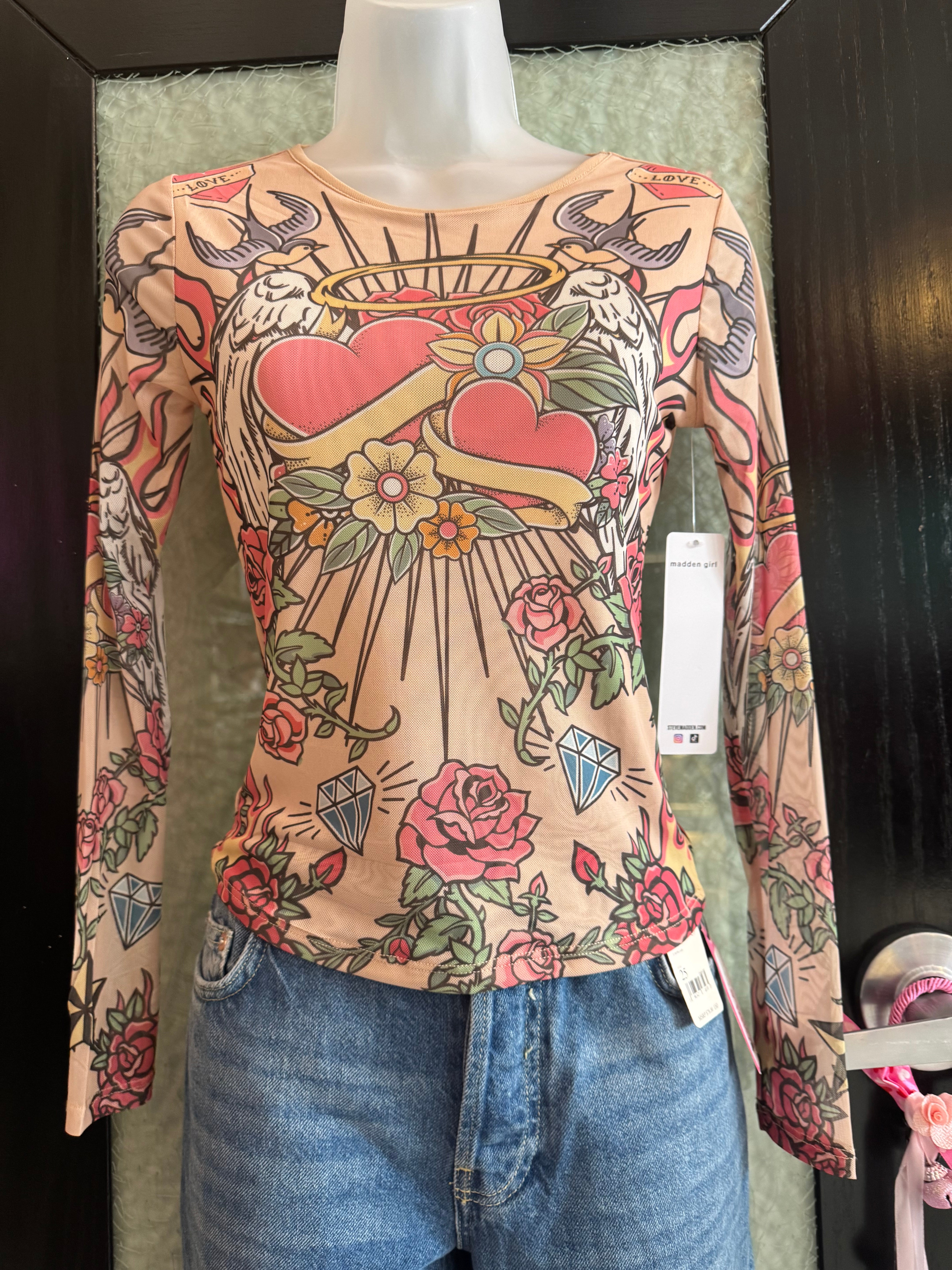 Sheer Mesh Tattoo Style Top By Madden Girl