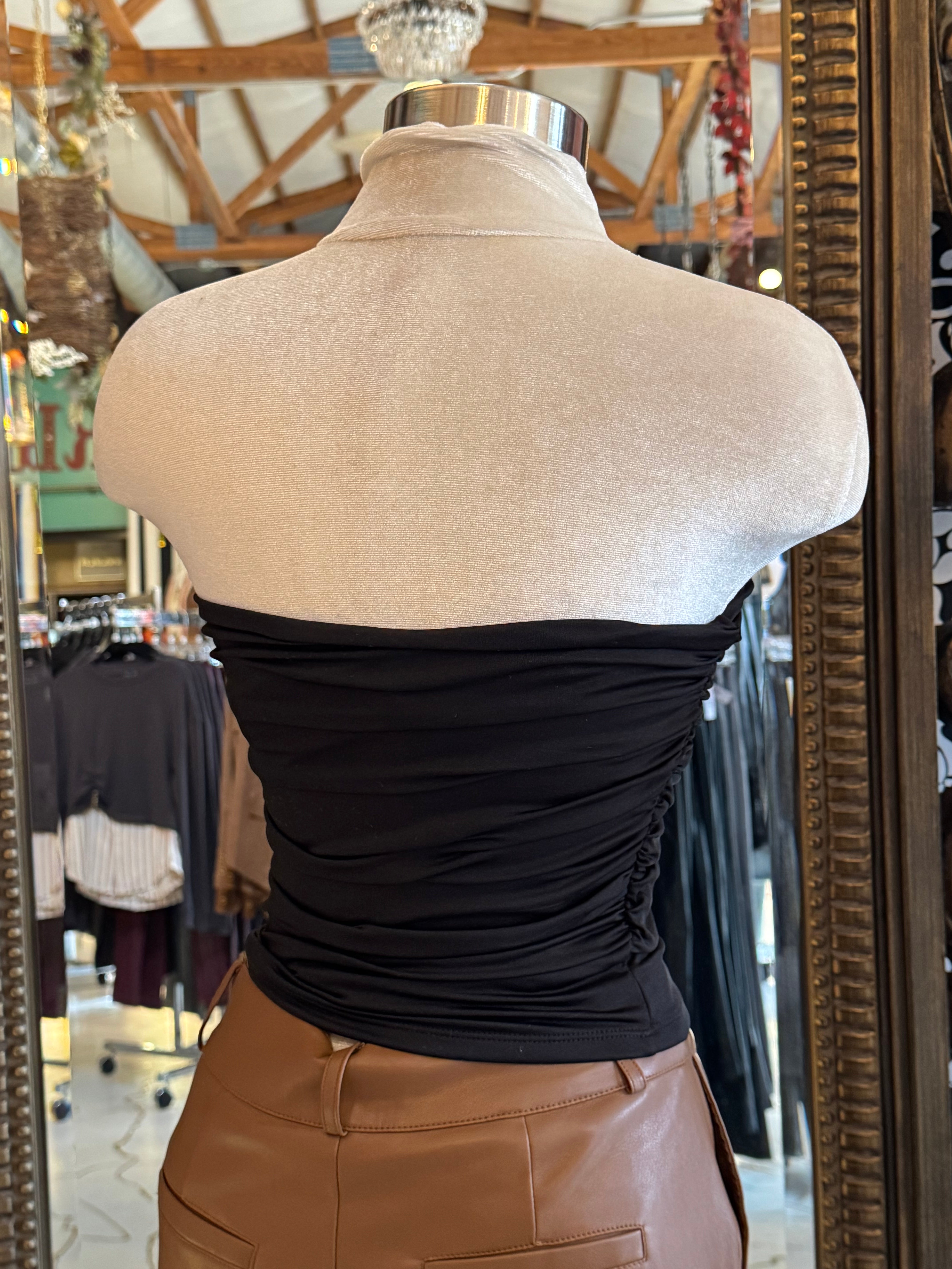 Introducing the Stone Top - a playfully chic strapless top featuring a metal V cut and a stunning stone embellishment. Perfect for adding some unique, quirky style to your wardrobe. (Just Polly approved!)