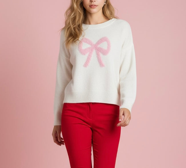 Snuggle up in style with the Bow Sweater by Heart & Crush! This cozy cutie features an adorable pink bow that says, "I’m cute, but I’m also ready for a cozy Netflix binge!" (Because why choose between fashion and warm fuzzies?) Perfect for chilly days and spontaneous dance parties!