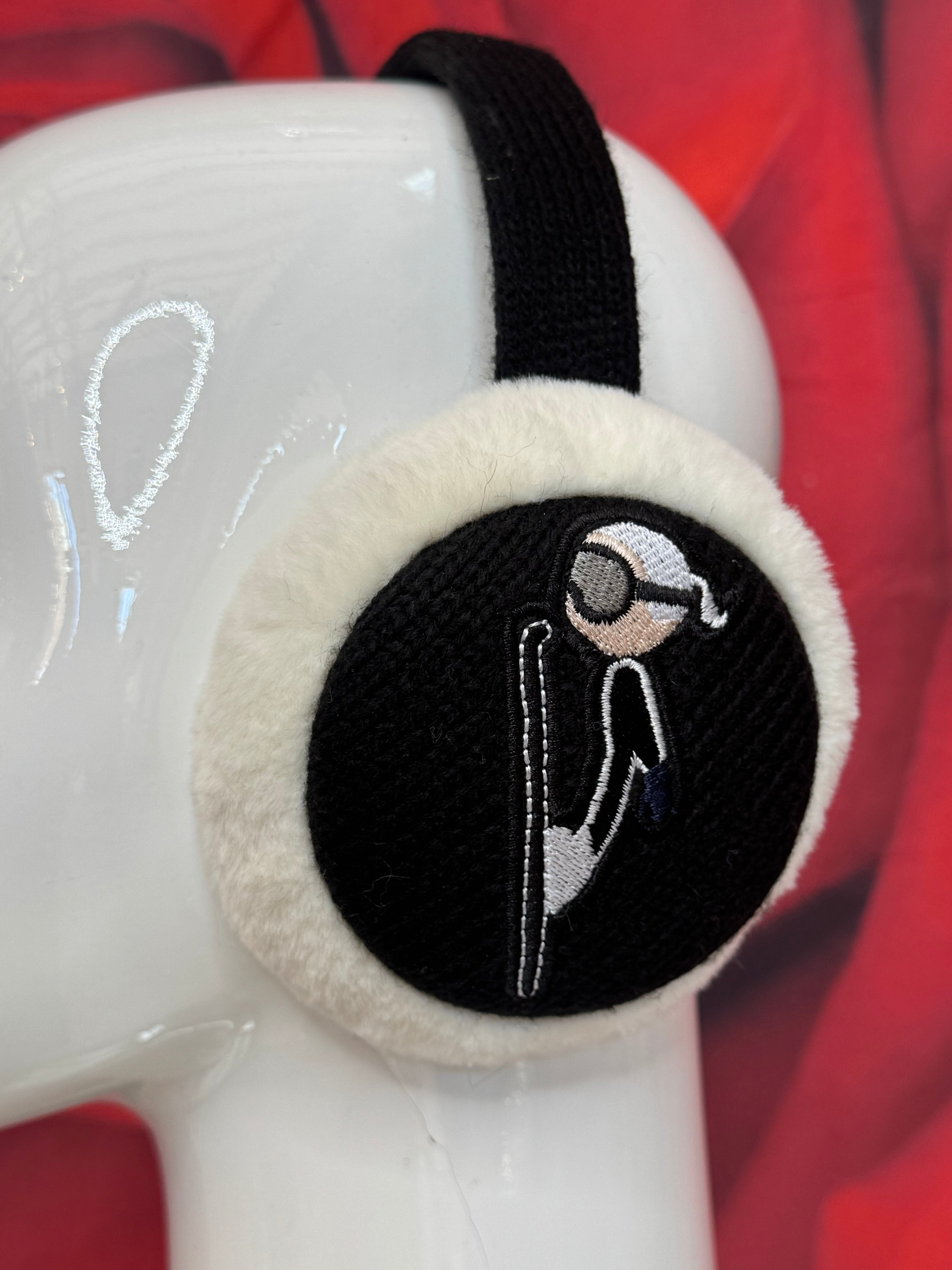 Ear Muffins by Karl Lagerfeld feature a unique design with kitty sledding imagery, providing a whimsical yet functional accessory for cold weather. These ear muffs effectively retain heat, with a material composition designed for comfort and insulation, making them a practical addition for outdoor activities in low temperatures.