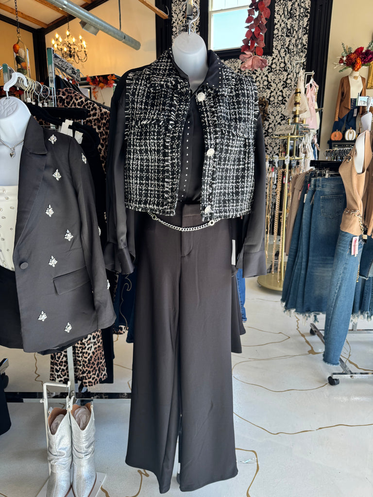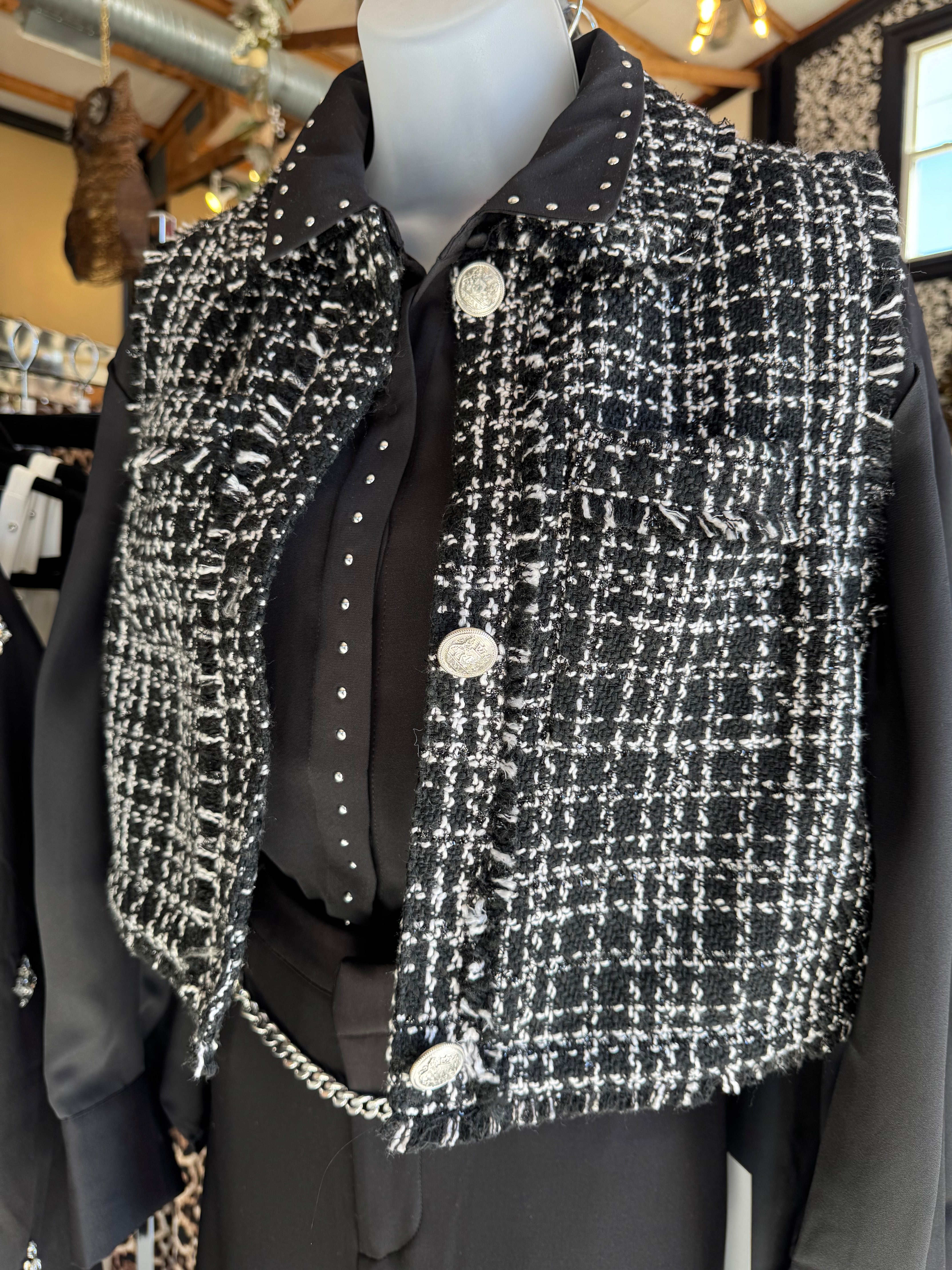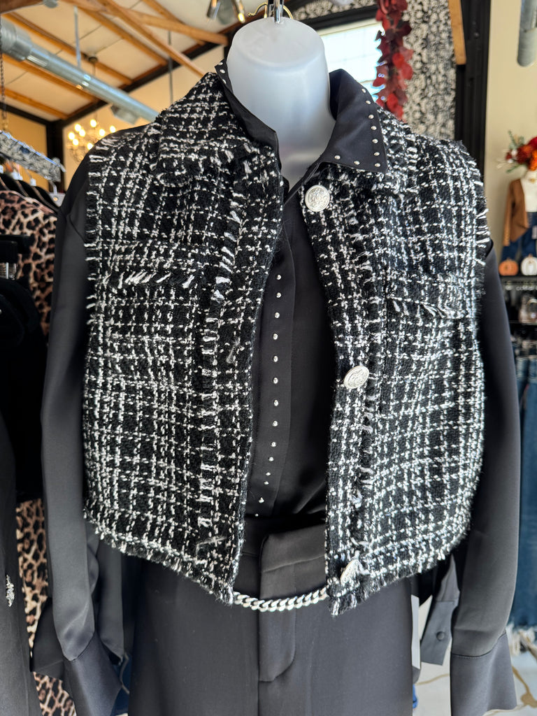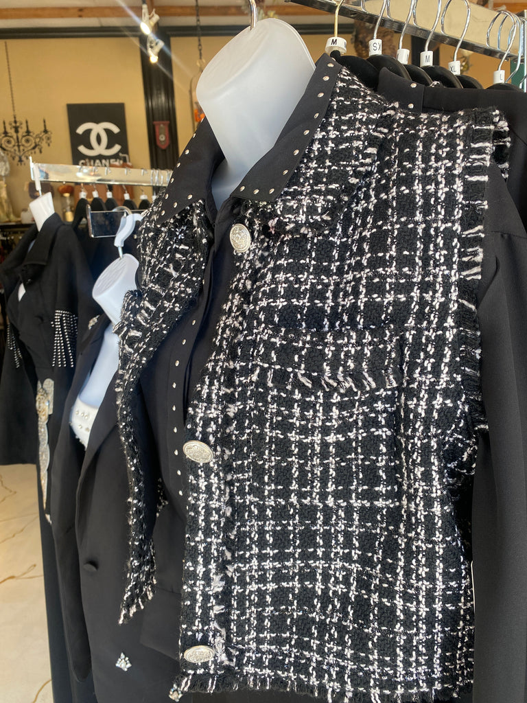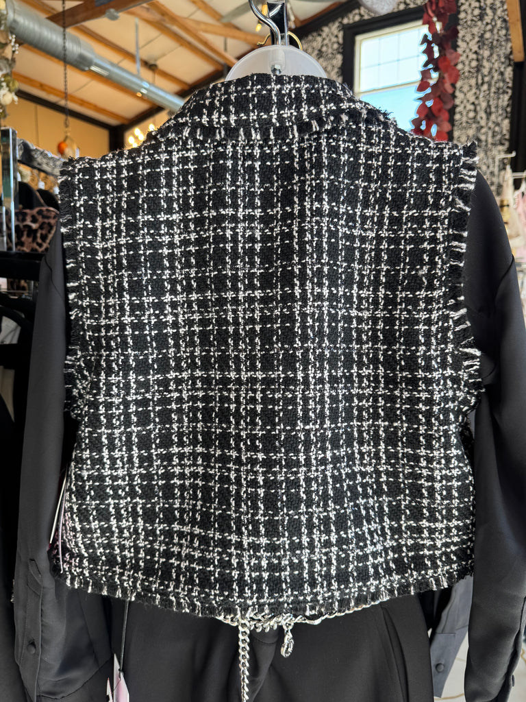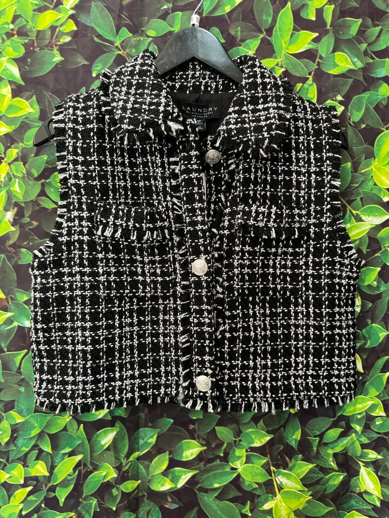 Expertly crafted with a timeless tweed design, this button-up vest by Laundry adds a touch of sophistication to any outfit. The classic button closure offers a secure fit, while the tweed fabric provides a sleek and stylish look. Elevate your wardrobe with this must-have piece.