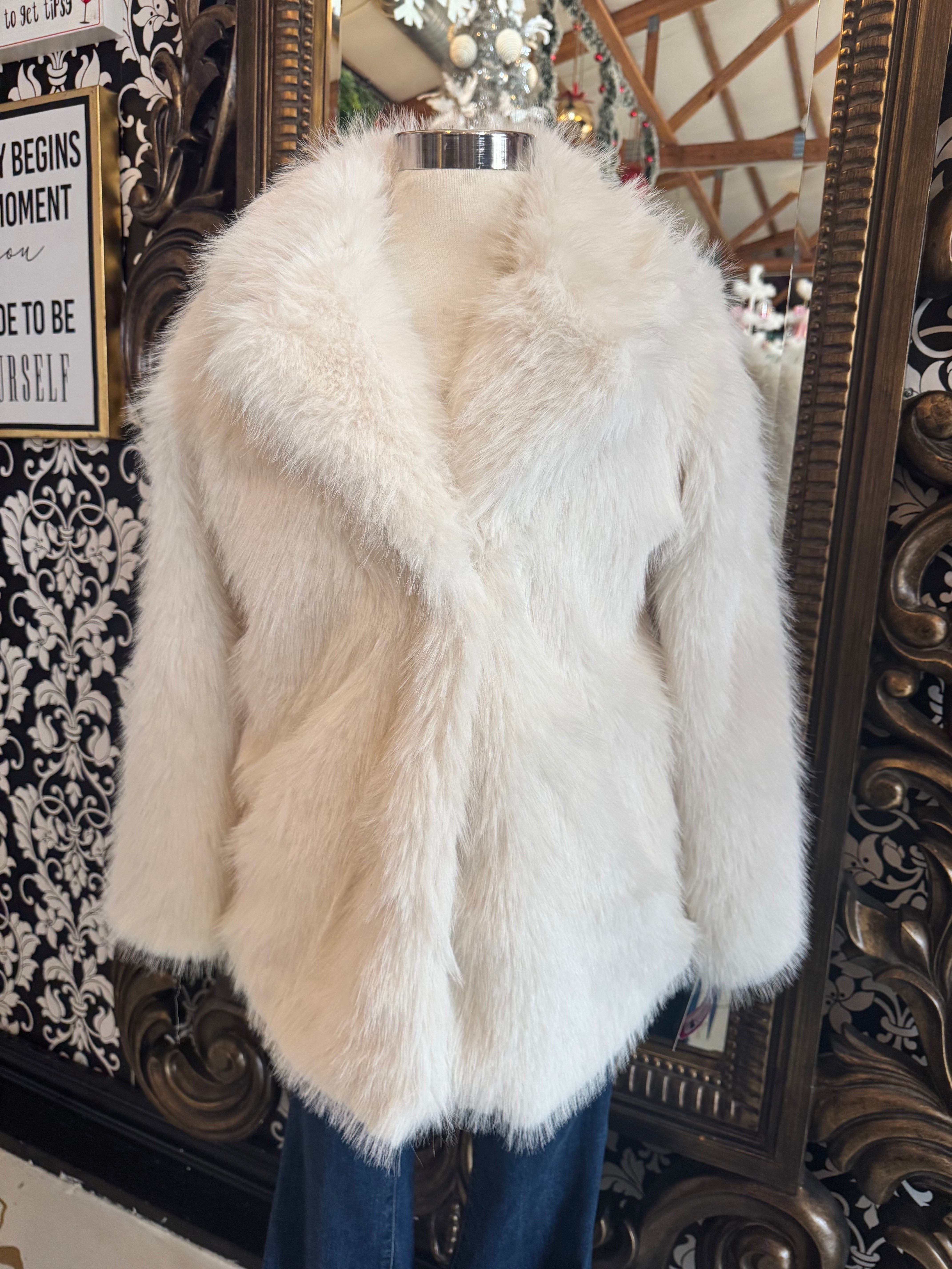 White Faux Fur Coat By Derek Heart