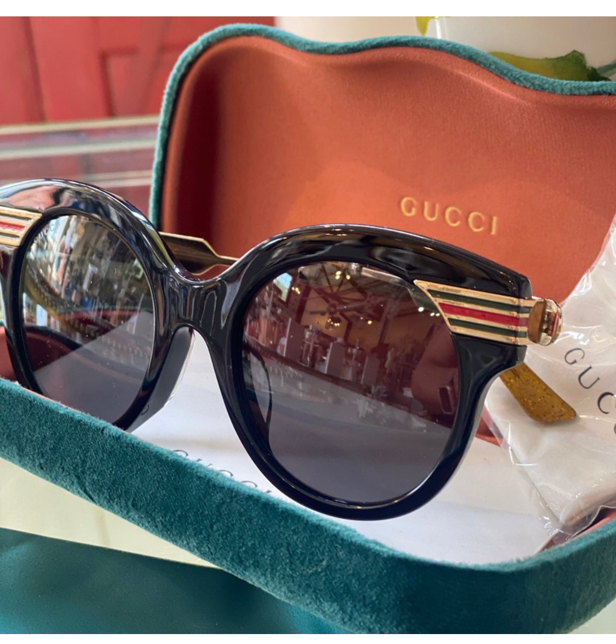 Includes Gucci Velvet Case, Silk Draw String Cover, Certificate of Authenticity & Lens Cloth