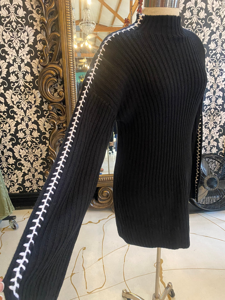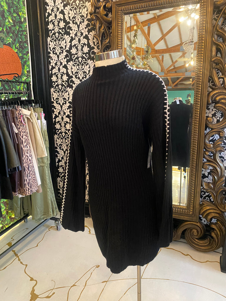 Black Sweater Knit Dress w/White Stitching By Derek Heart