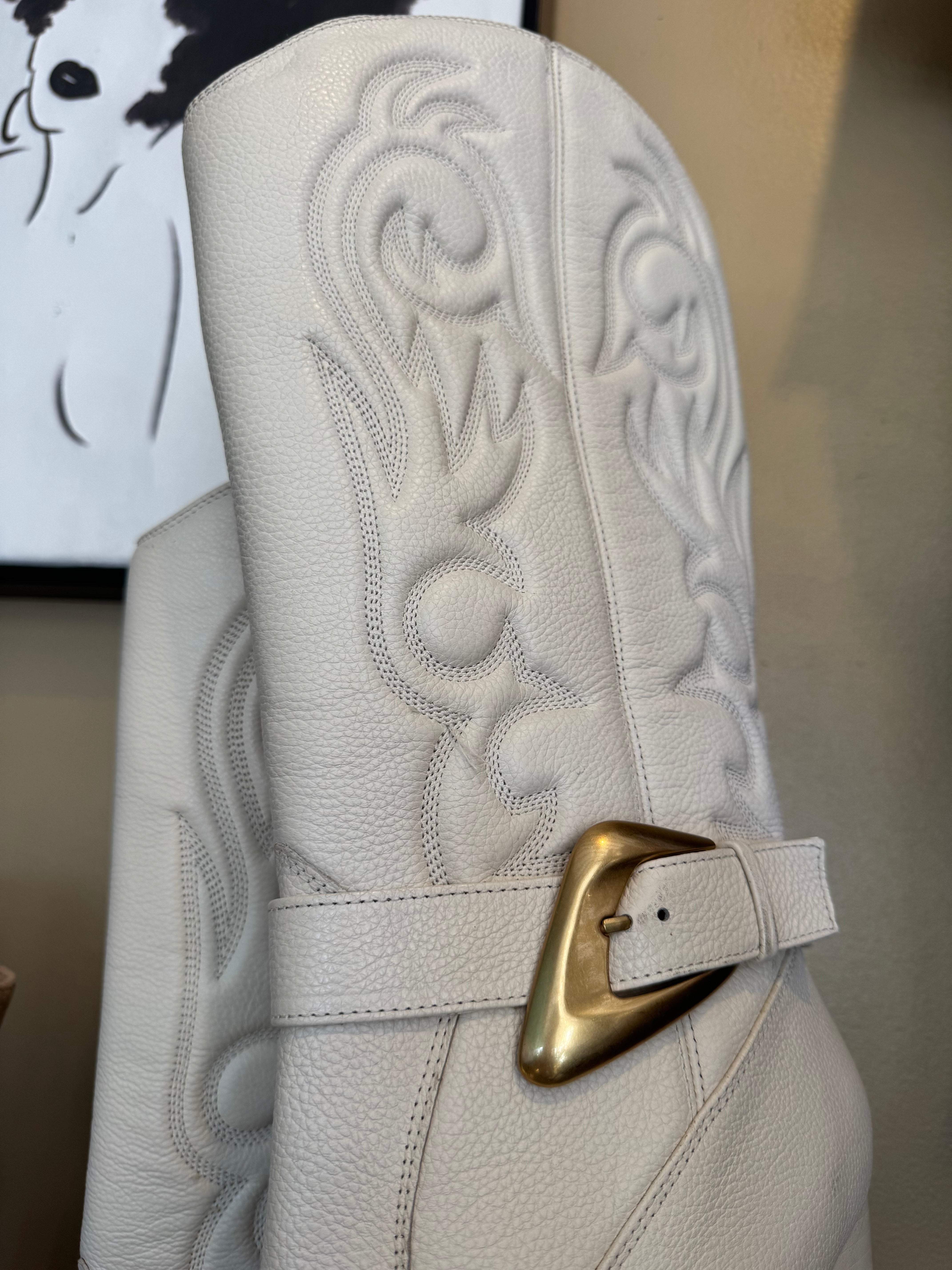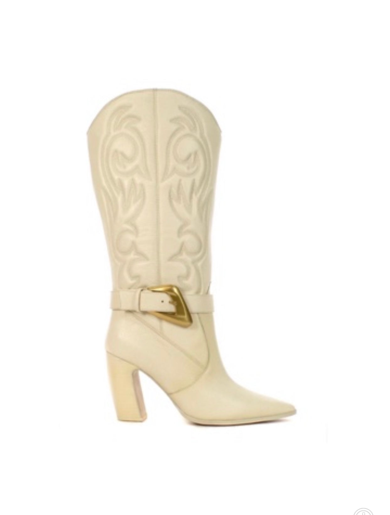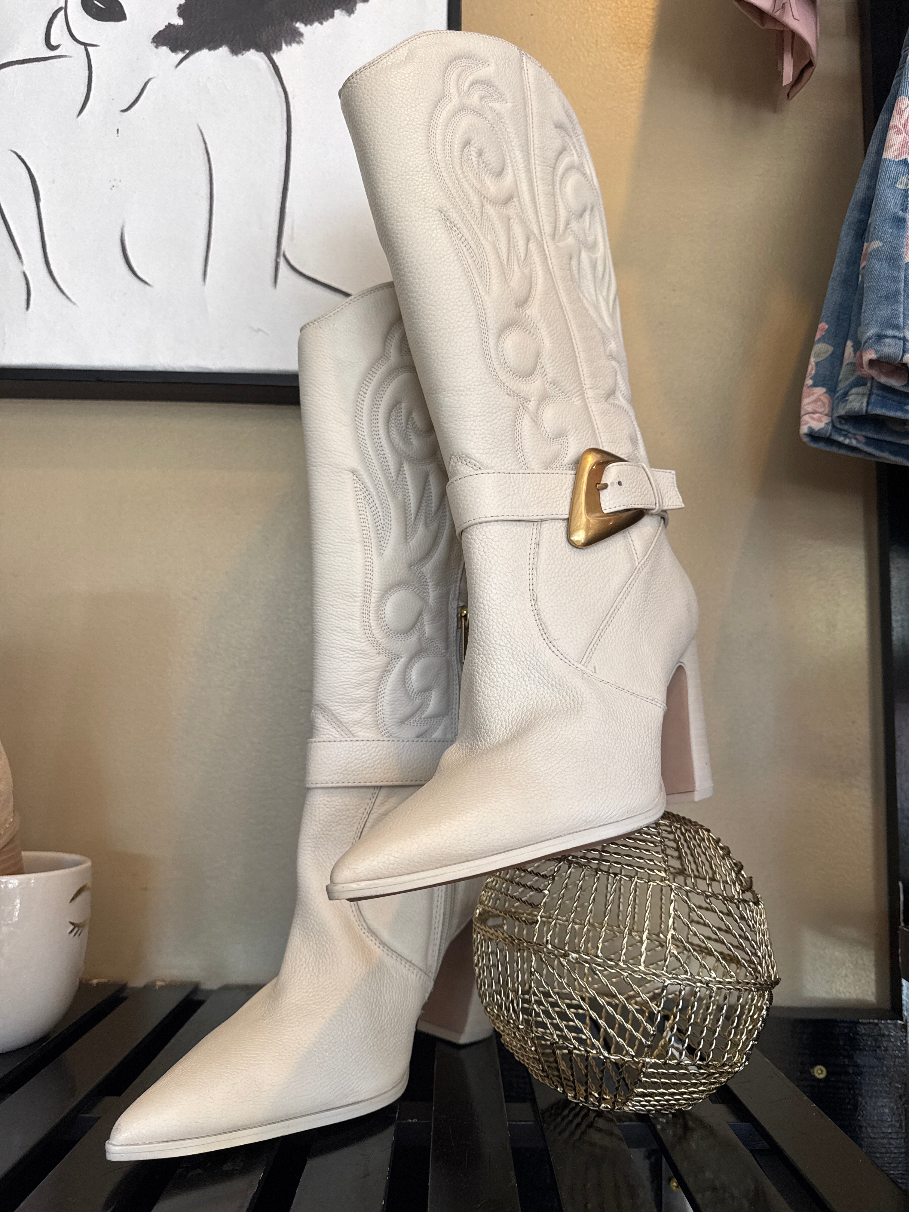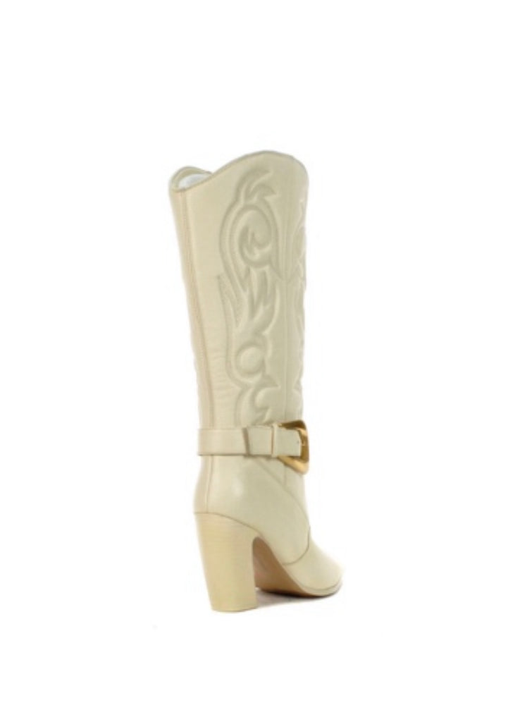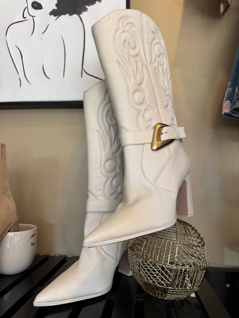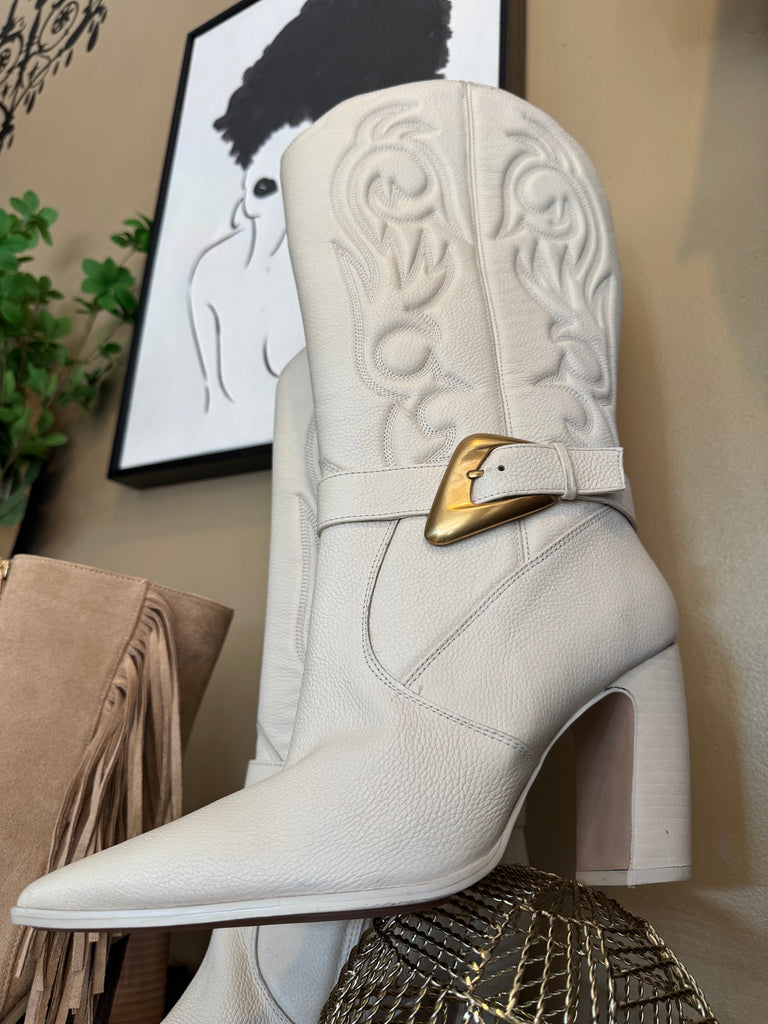 Gold Buckle Biancaa Ivory Cowgirl Boots By Vince Camuto