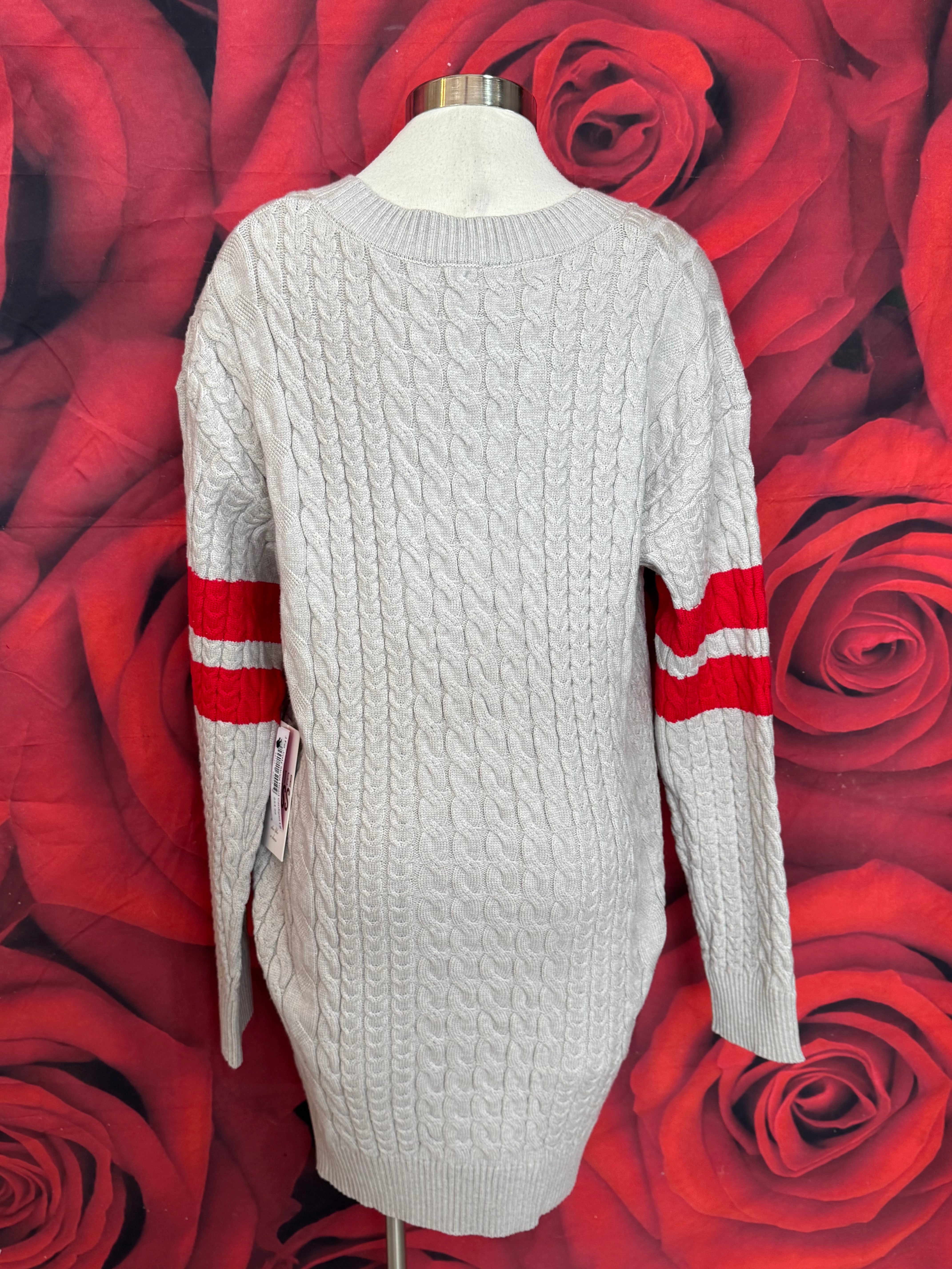 Get ready to wrap yourself in a striped heartwarming hug with the Striped Heart Cardigan by J for Justify! This cute cardigan combines the cozy vibes of a sweater with the sporty flair of a letterman jacket. Throw it on as a sweater dress and strut your stuff—because who says you can't have your heart worn on your sleeve (and everywhere else)?